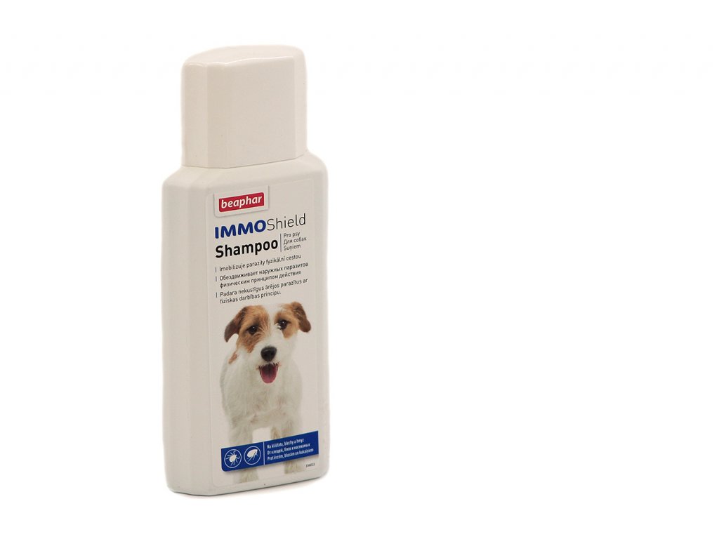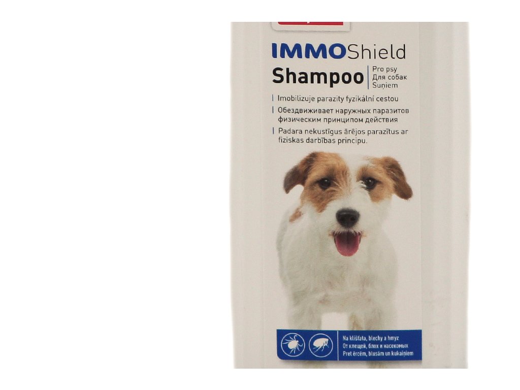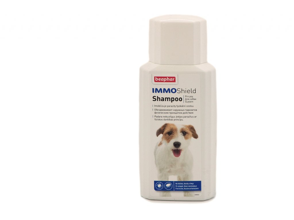 Beaphar IMMO Shield šampon spolehlivě imobilizuje klíšťata, blechy, vši, všenky, komáry a další obtížný hmyz fyzikální cestou bez chemických insekticidů. Šampon je založen na účinné látce dimetikon (silikonový olej), který hmyz potáhne povrchovou vrstvou – ta inhibuje jejich klouby a působí jako lepivá past.