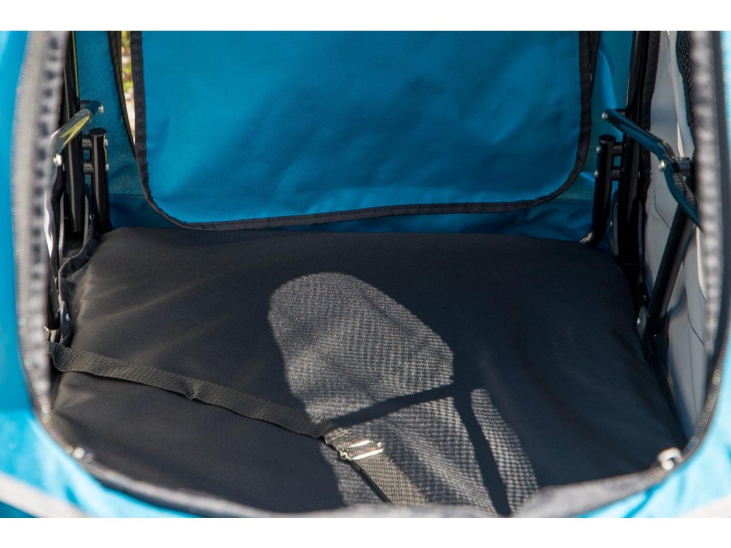 Kočárek vyniká extra prostornou kabinou o rozměrech 85 × 55 × 60 cm a je tak vhodný pro přepravu i více psů najednou. Síťované přední, horní a boční strany poskytují dostatek výhledu i čerstvého vzduchu, přední a horní síťku lze navíc rozepnout. Rozepínací je i celá zadní strana kabiny pro snadný nástup nebo manipulaci s převáženými psy. Uvnitř najdete pevnou vyjímatelnou podložku a dva popruhy s karabinou na připoutání psů v kabince.
