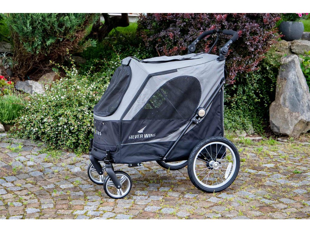 Kočárek pro psy PetStro SILVER WING, černo-šedý