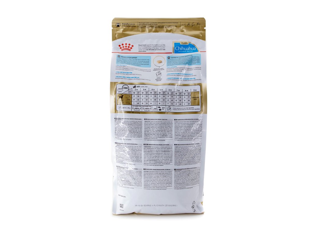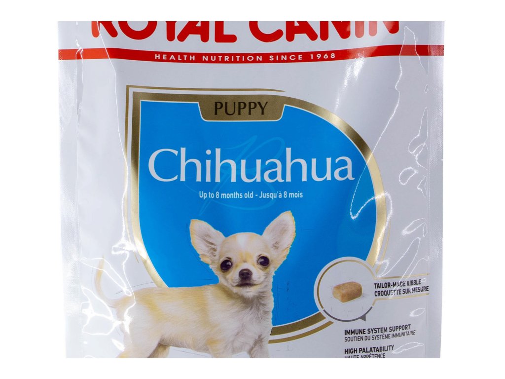 Granule pro psy Royal Canin Chihuahua PUPPY představují vyvážené krmivo se speciální recepturou určenou pro štěňata plemene čivava do 8 měsíců. Granule obsahují vybrané, dobře stravitelné složky a živiny zaručující výbornou snášenlivost, podporují zdravý imunitní systém a brání tvorbě zubního kamene.