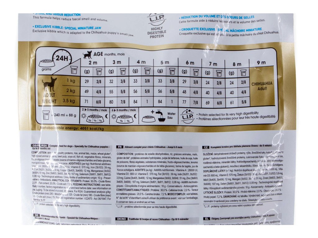 - kompletní krmivo pro pro štěňata plemene čivava – do 8 měsíců,