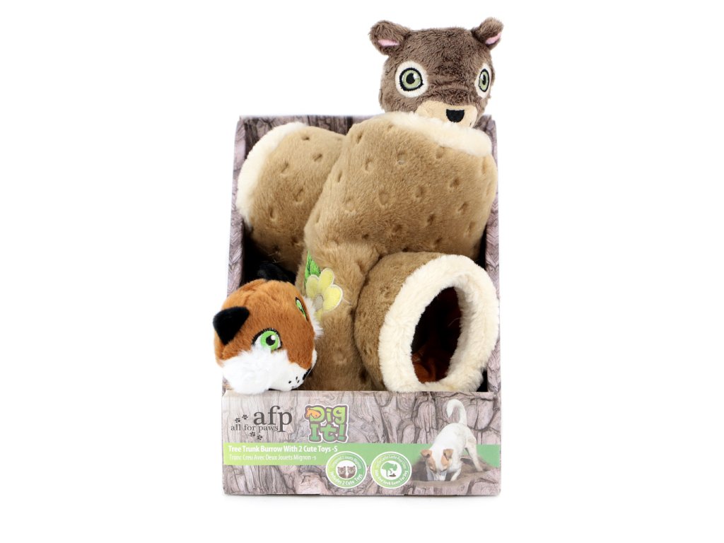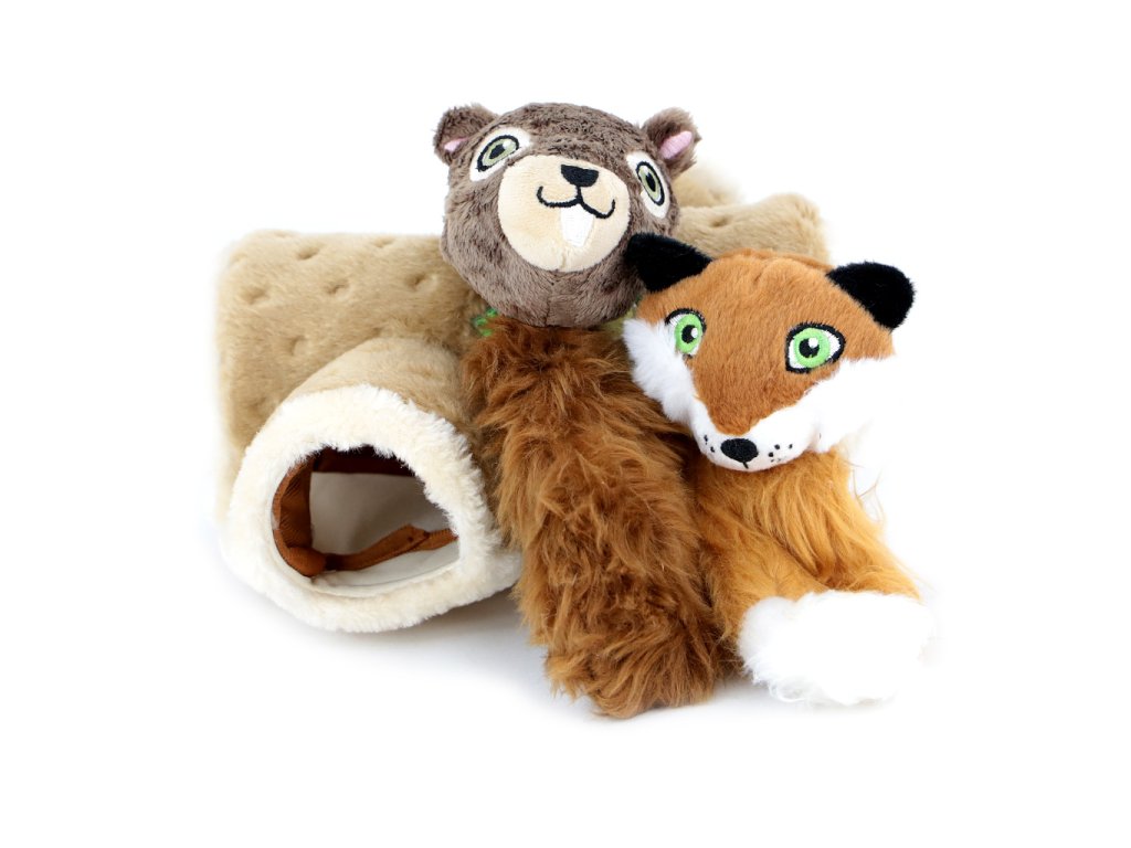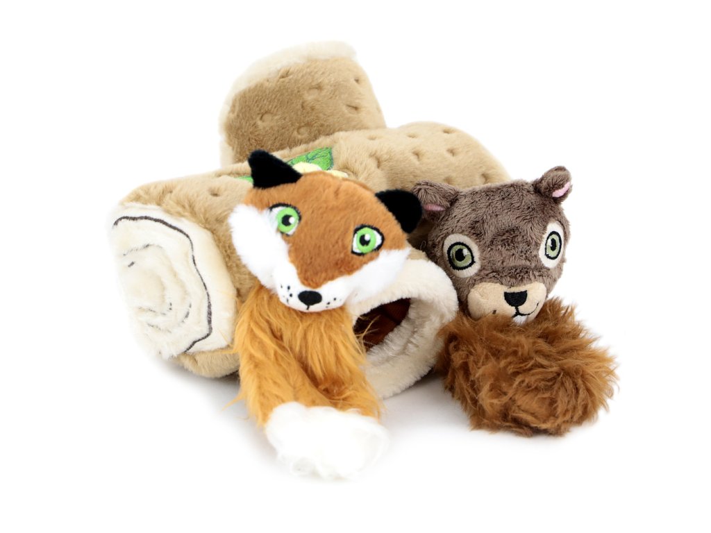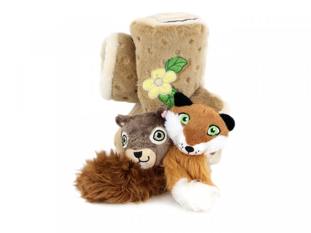 Roztomilá hračka vhodná pro štěňata a psy menších plemen vyrobená z měkoučkého jemného plyše – dutý kmen se dvěma ukrytými hračkami. Liška a veverka při stisknutí šustí a spolehlivě tak zaujmou a vybudí ke hře každého zvídavého psa.