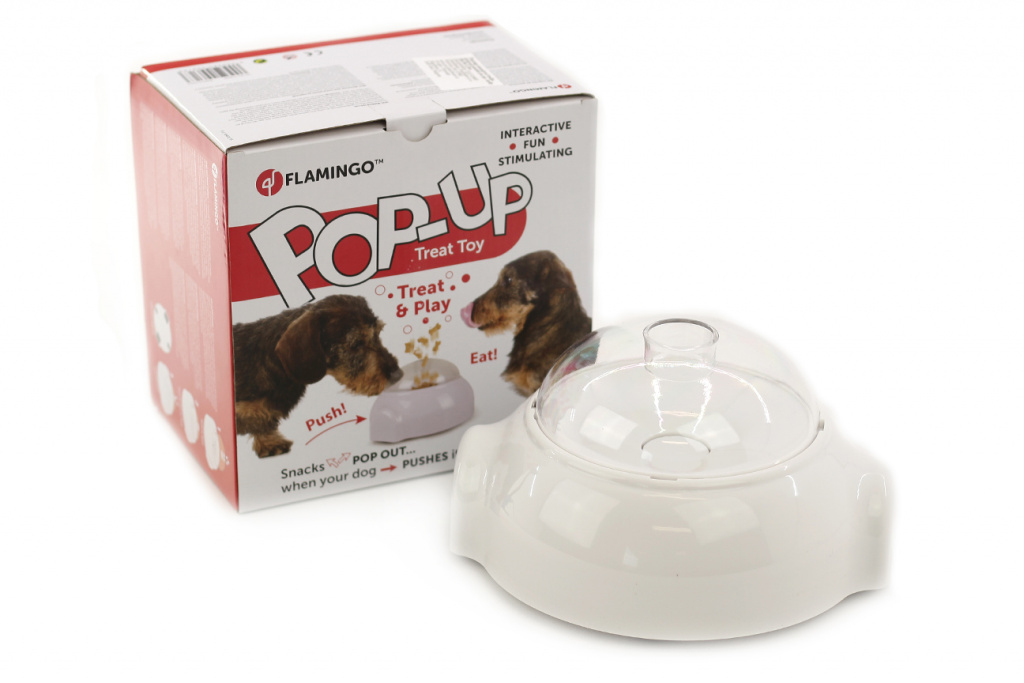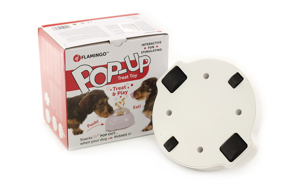 Skvělá interaktivní hračka pro psy, která dokáže zabavit na dlouhou dobu – minimálně do té doby, než pamlsky dojdou. Do hračky FLAMIGO jednoduše nasypete oblíbené pamlsky a necháte psa najít způsob, jak se k nim nenásilně dostat. Do hračky, která je vespod opatřena kolečky, stačí čumáčkem nebo packou strkat, natáhne se pružinka, a pamlsky začnou horním otvorem vyskakovat ven.
