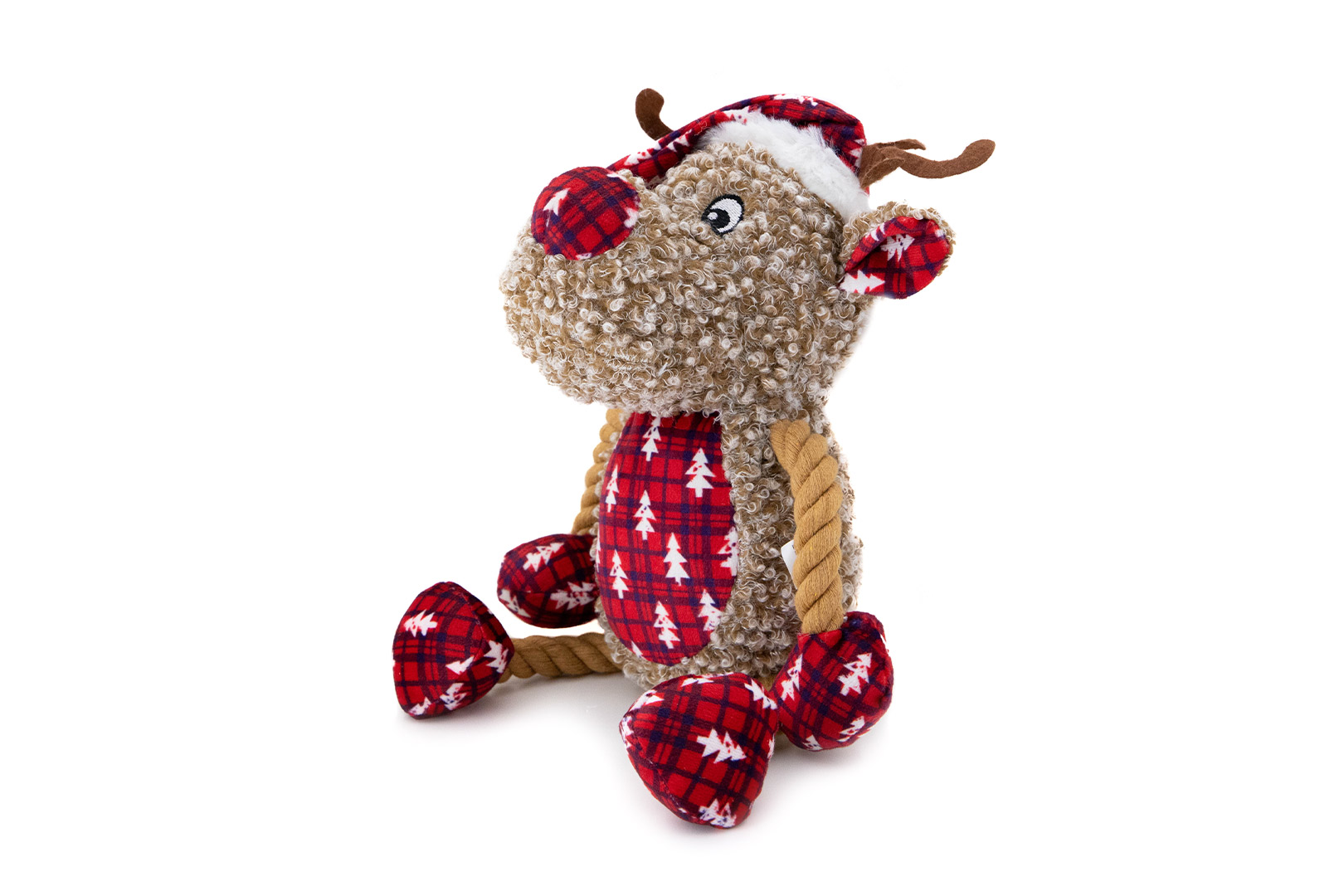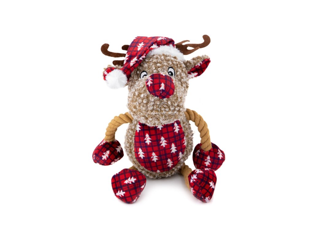 Hračka pro psy FLAMINGO – plyšový sob s vánoční čepičkou