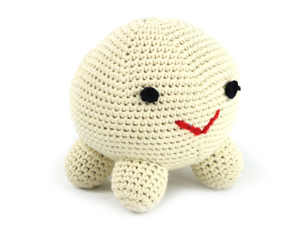 Netradiční háčkovaná hračka pro psy je vyrobená z nejkvalitnější bavlny. Při kousání stimuluje a masíruje dásně a přirozeným způsobem tak podporuje správnou funkci kousacího a žvýkacího aparátu. Je také ideální pro oblíbenou psí zábavu – aportování.