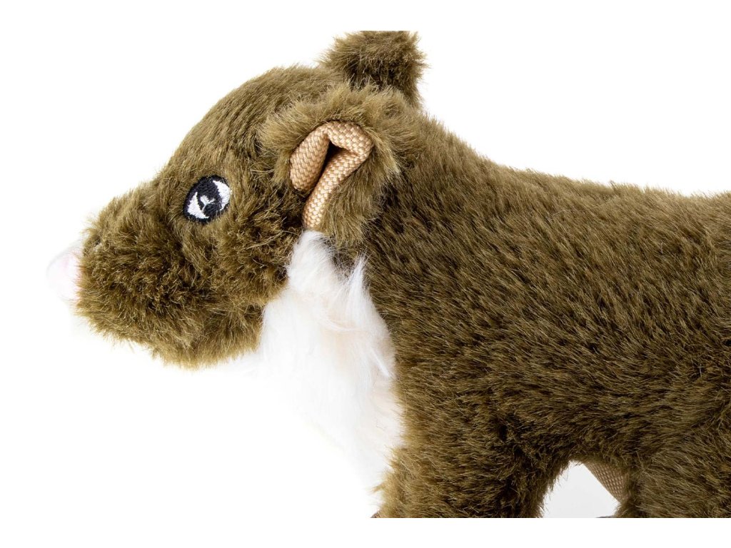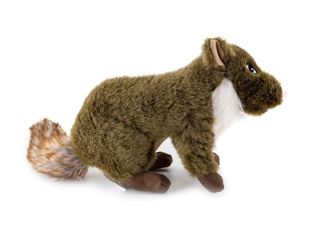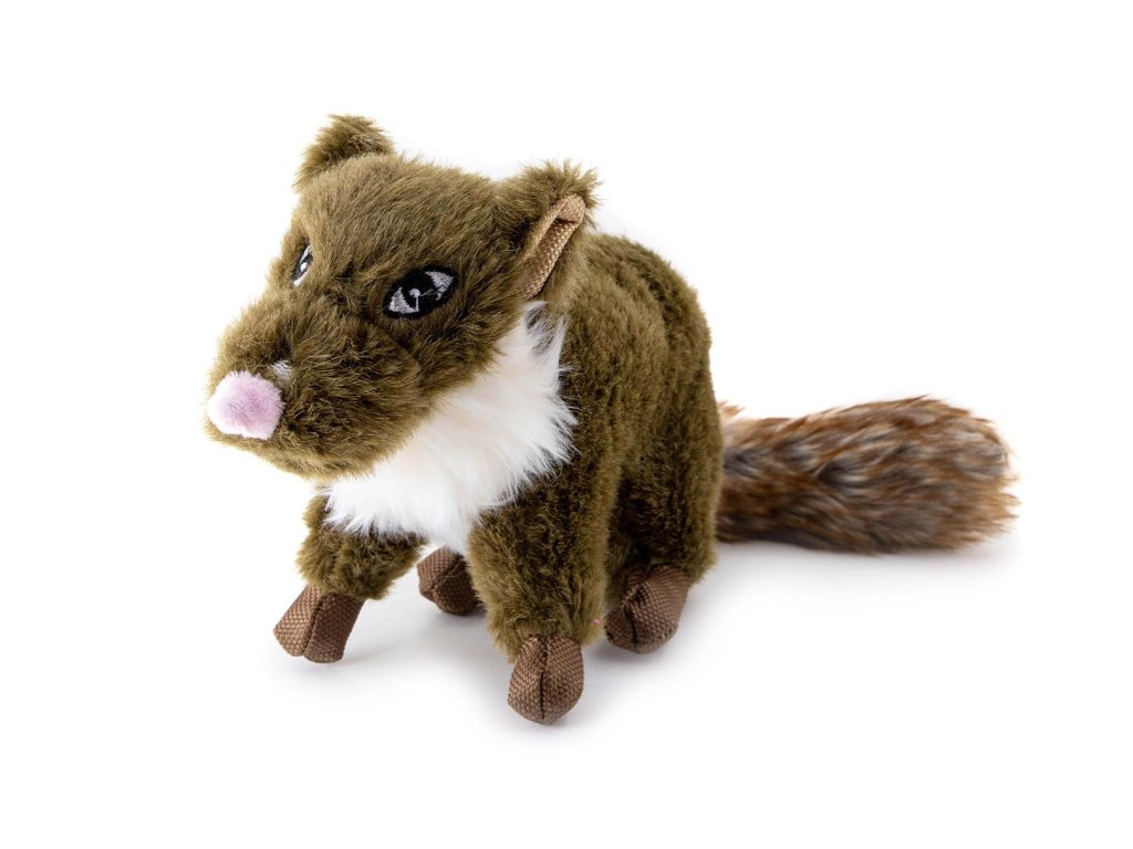 Roztomilá plyšová kuna se rychle stane oblíbeným společníkem vašeho pejska! Hračka má velikost cca 25 cm (bez ocasu), je vyrobená z měkoučkého a huňatého materiálu příjemného na dotek a při stisknutí vydává pískací zvuk, který psa motivuje ke hře.