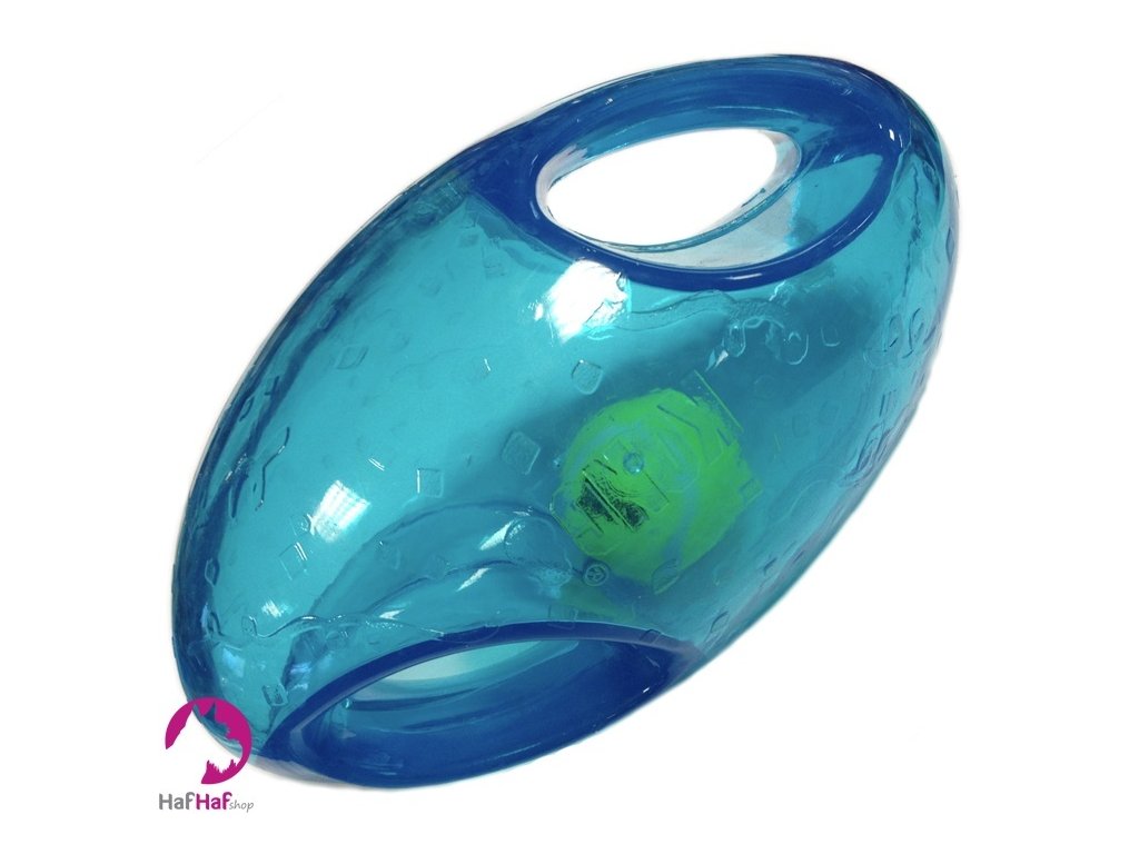 Dvojitá zábava – tenisový míček uvnitř a hlasitý, pískavý zvuk motivující psa ke hře.