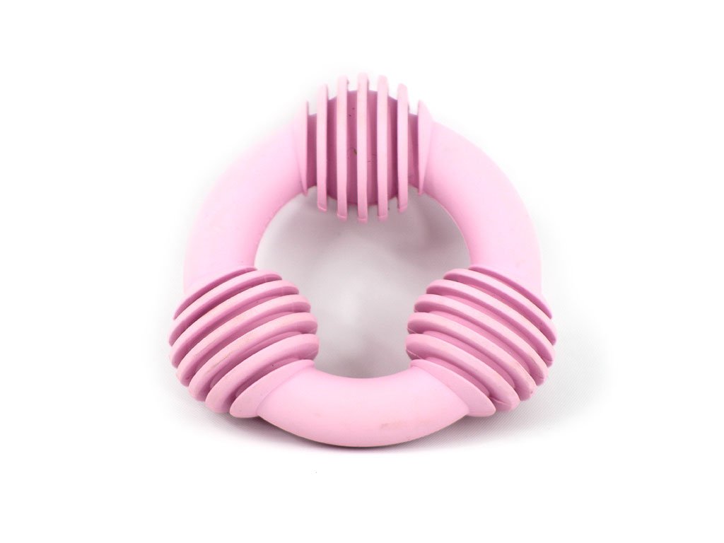 Gumová žvýkací hračka je vyrobená z měkké gumy s ideální tvrdostí a speciálně tvarovaným profilem, který při kousání stimuluje a masíruje dásně a přirozeným způsobem tak podporuje správnou funkci kousacího a žvýkacího aparátu. Je také vhodná i pro oblíbenou psí zábavu – aportování.