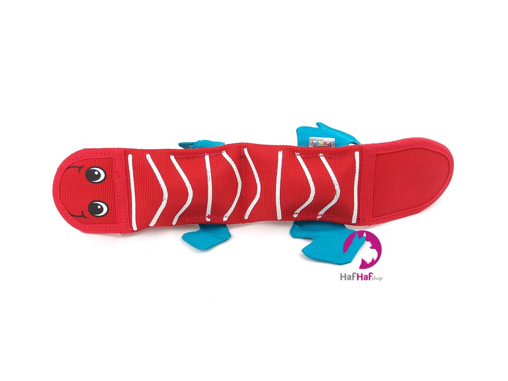 Ještěrka je veselá hračka pro psy z velmi pevného a odolného materiálu vhodná pro malá i střední plemena psů. Hračka obsahuje dvě všitá „pískátka“ a díky tvaru a délce 41 cm je přímo předurčena k přetahování. Váš pes bude tuto hračku milovat.