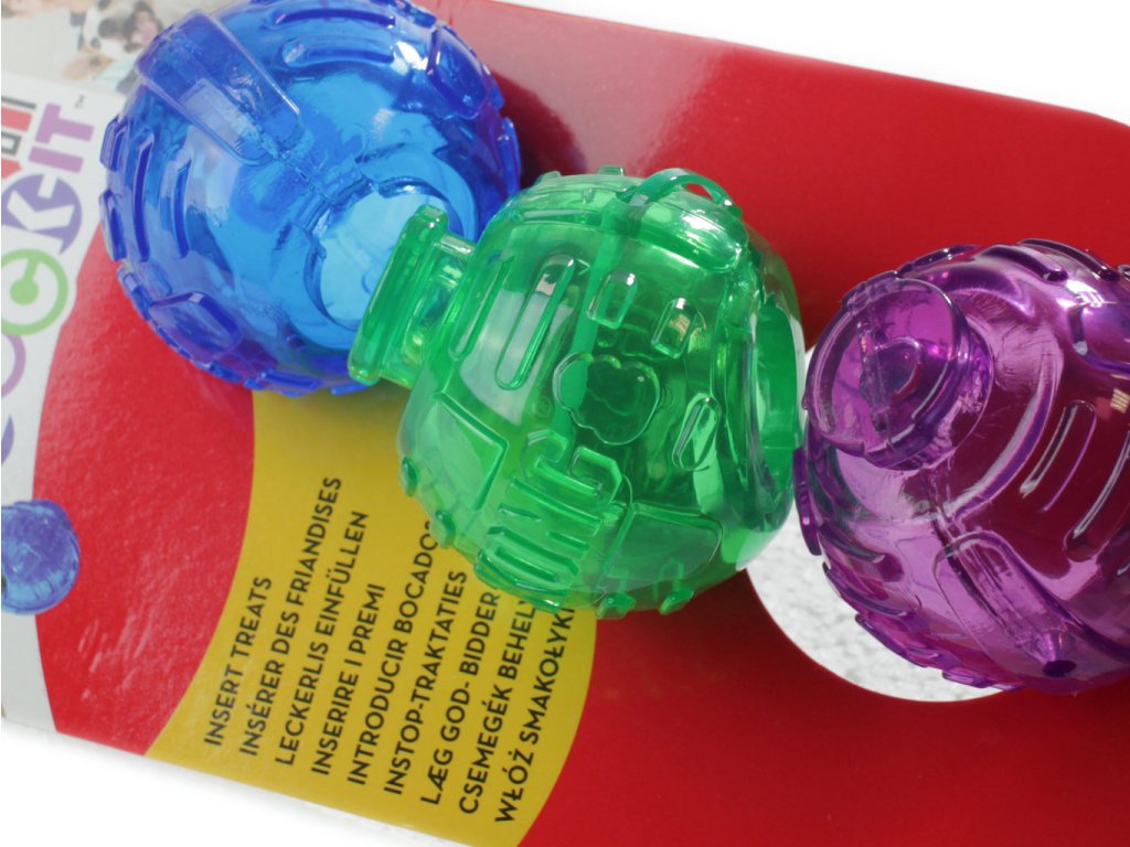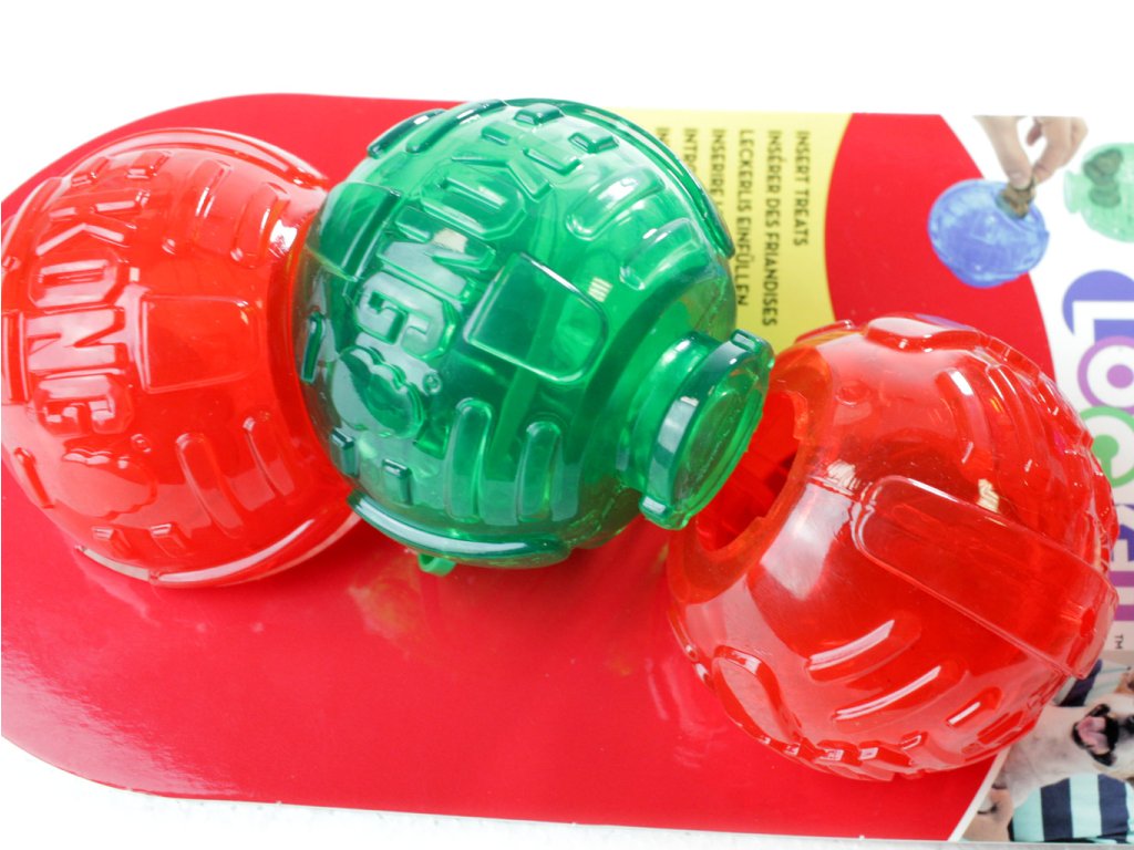 Originální hračka pro psy od KONG je určená pro plnění granulemi nebo psími pamlsky. Naplňte dobrotami všechny tři části, spojte je dohromady a už jen sledujte, jak si váš pes s touto výzvou poradí.