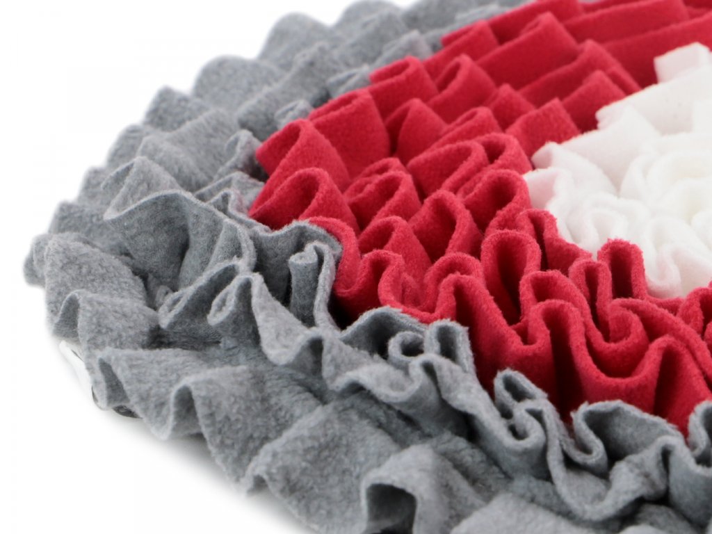 Psi vyžadují neustále nové fyzické a duševní podněty, aby si udrželi tělesnou aktivitu a zdravou mysl. Čmuchací kobereček s třásněmi různých barev se stane velmi příjemnou a vyhledávanou zábavou pro vašeho psa, který si své oblíbené pamlsky bude muset sám najít a tak si je zasloužit.