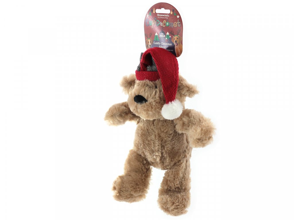 Roztomilá hračka pro psy všech plemen a velikostí – plyšový medvídek se stylovou červenou čepičkou, kterého si váš pes zamiluje. Hračka při stisknutí píská a spolehlivě tak zaujme každého psa.