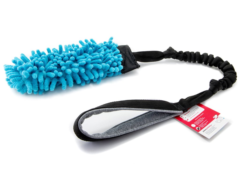 „MOP“ je odolná přetahovací hračka vhodná pro středně velká plemena psů. Hračka je opatřená pružným amortizérem, který spojuje pohodlnou, softshellem podšitou rukojeť s měkkou částí určenou pro psí zoubky.