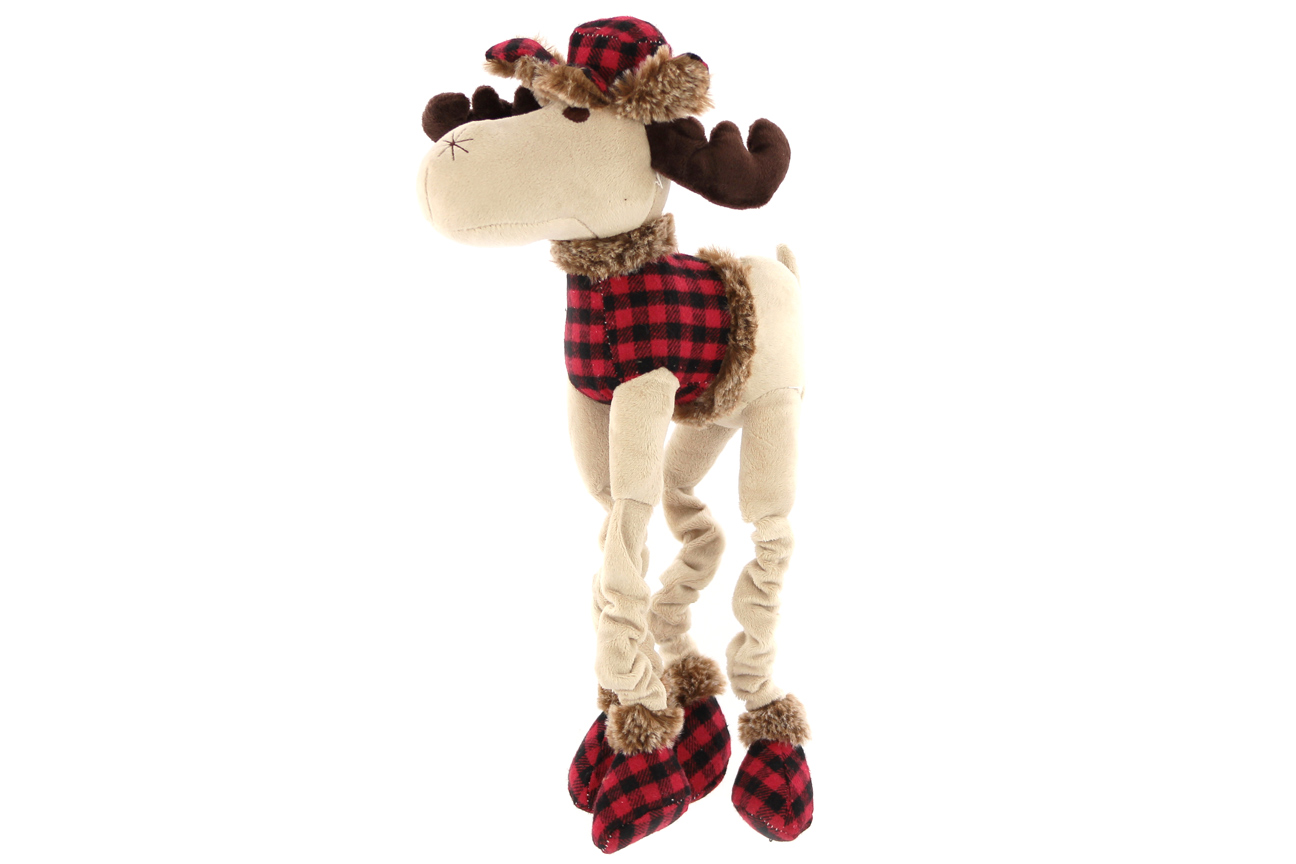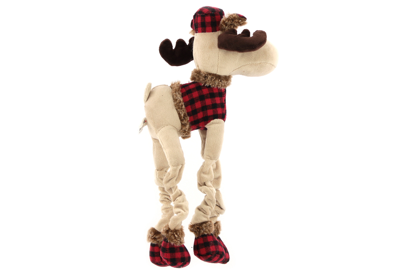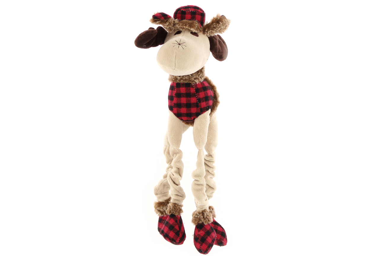 Originální hračka pro malé a střední psy – sob. Hračka je vyrobená z měkoučké látky kombinované s kožešinkou, je natahovací a při zmáčknutí píská. Je ideální pro oblíbenou psí zábavu – aportování a přetahování.