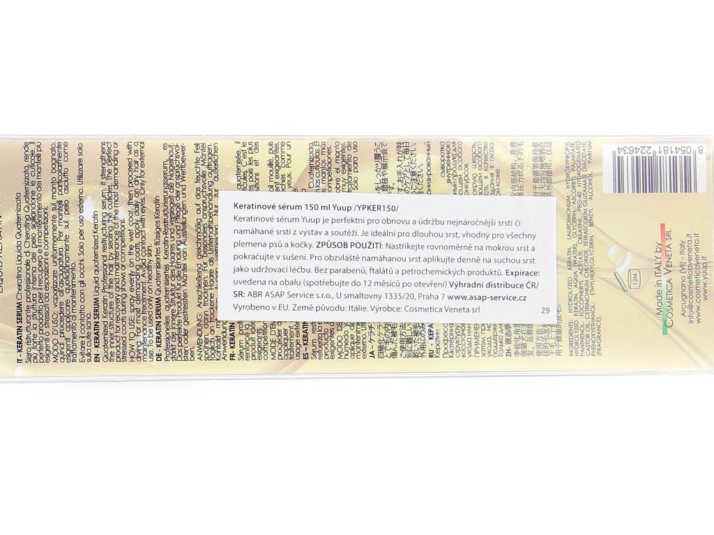 Keratinové sérum pro obnovu, regeneraci a péči o srst namáhanou častou úpravou při výstavách, soutěžích apod. Sérum je vhodné pro všechna plemena psů i koček, zvláště těch s dlouhou srstí – kvarternizovaný keratin ve vysoké koncentraci posiluje vnitřní strukturu chlupu a pomáhá rozčesávání .