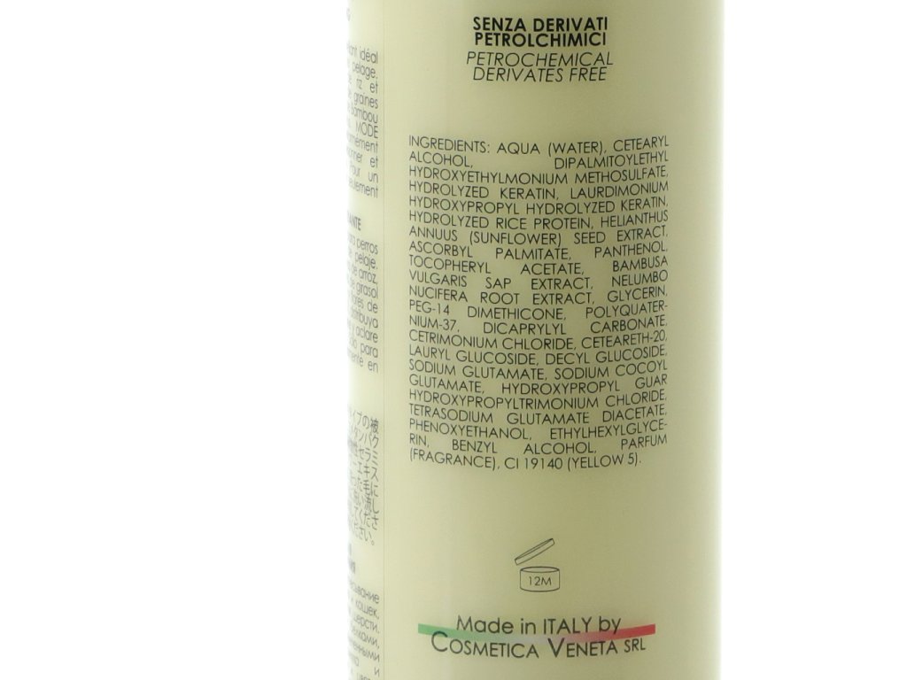 AQUA (WATER), CETEARYL ALCOHOL, DIPALMITOYLETHYL HYDROXYETHYLMONIUM METHOSULFATE, HYDROLYZED KERATIN, LAURDIMONIUM HYDROXYPROPYL HYDROLYZED KERATIN, HYDROLYZED RICE PROTEIN, HELIANTHUS ANNUUS (SUNFLOWER) SEED EXTRACT, ASCORBYL PALMITATE, PANTHENOL, TOCOPHERYL ACETATE, BAMBUSA VULGARIS SAP EXTRACT, neLUMBO NUCIFERA ROOT EXTRACT, GLYCERIN, PEG-14 DIMETHICOne, POLYQUATERNIUM-37, DICAPRYLYL CARBONATE, CETRIMONIUM CHLORIDE, CETEARETH-20, LAURYL GLUCOSIDE, DECYL GLUCOSIDE, SODIUM GLUTAMATE, SODIUM COCOYL GLUTAMATE, HYDROXYPROPYL GUAR HYDROXYPROPYLTRIMONIUM CHLORIDE, TETRASODIUM GLUTAMATE DIACETATE, PHENOXYETH1L, ETHYLHEXYLGLYCERIN, BENZYL ALCOHOL, PARFUM (FRAGRANCE), CI 1914ne (YELLOW 5)