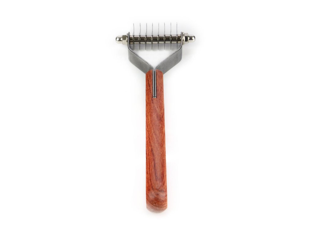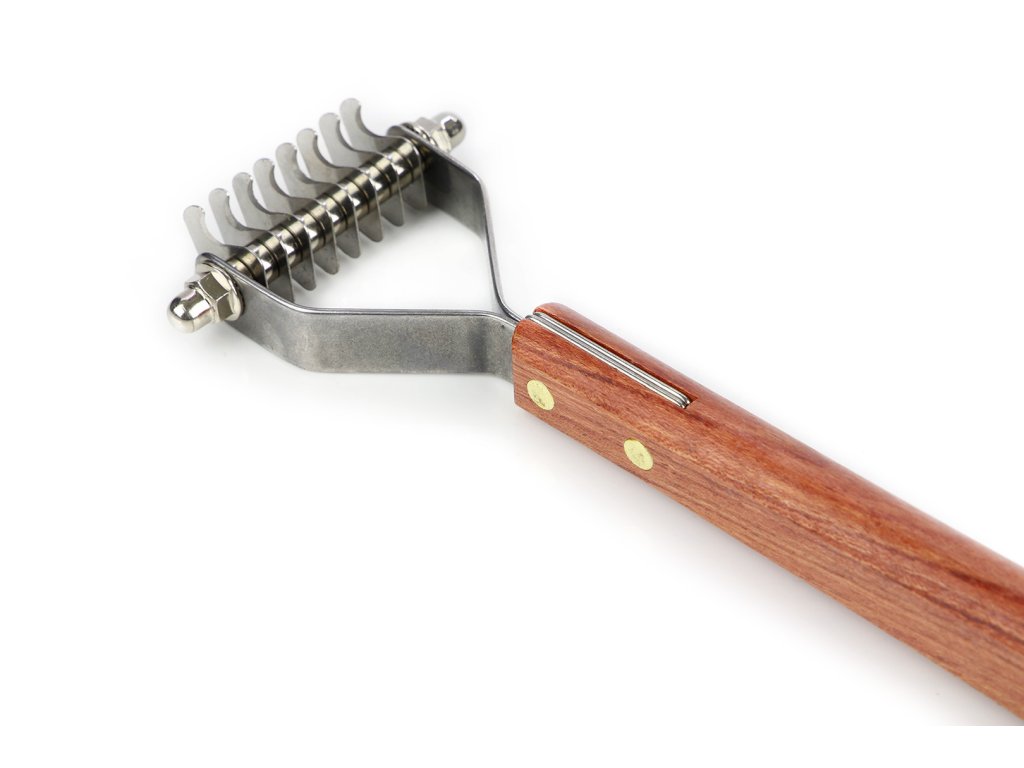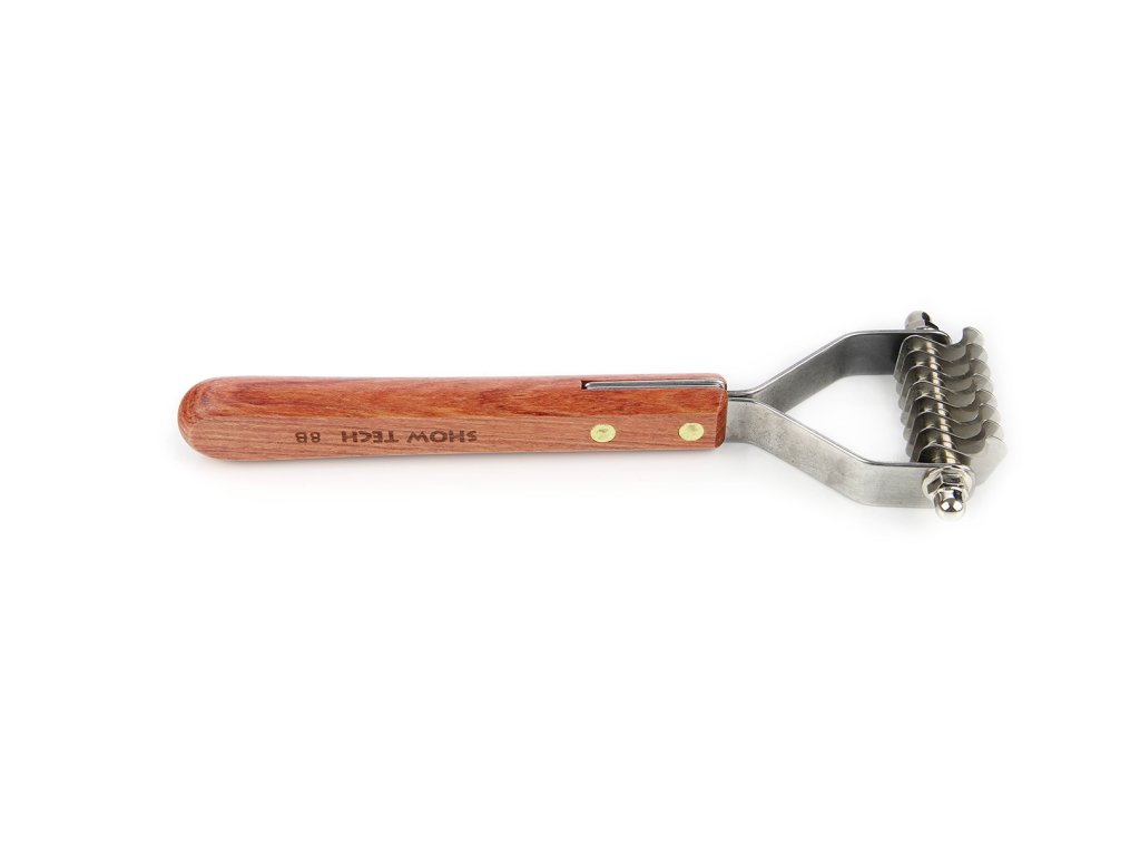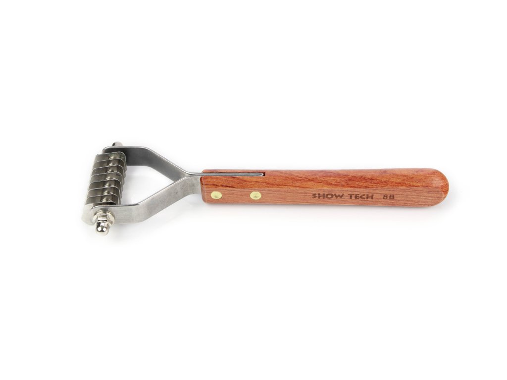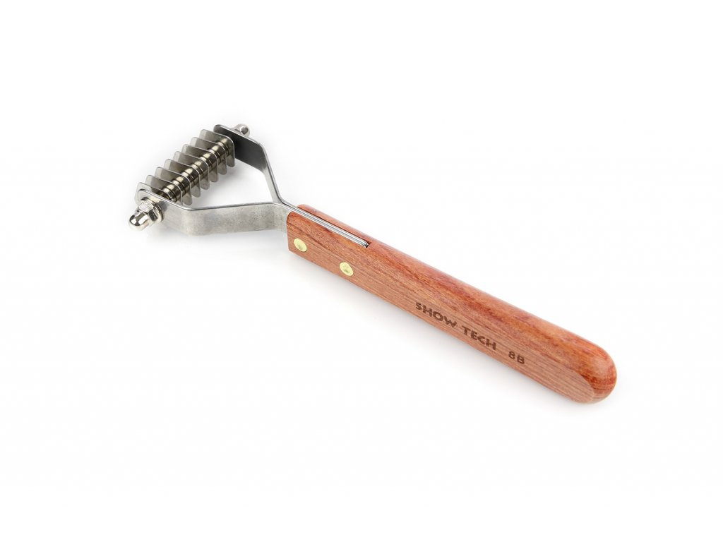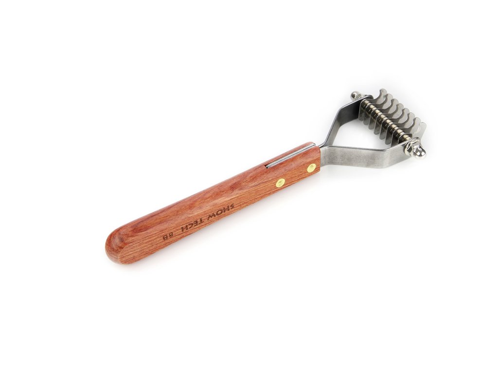 Trimovací hrabičky pro snadné a rychlé vyčesávání odumřelé srsti od SHOW TECH. Hrabičky mají dřevěnou rukojeť a 8 zakulacených broušených čepelek z tvrzené oceli pro hustější srst.