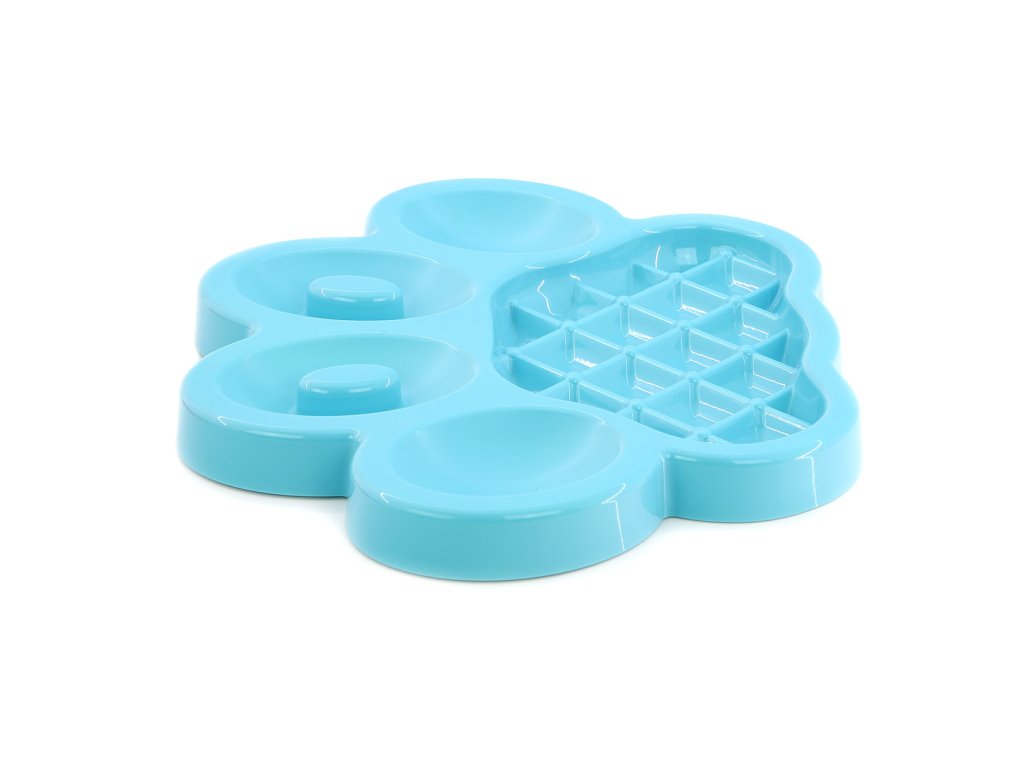 Miska Paw Slow Feeder má unikátní tvarované dno s pěti oddělenými sekcemi, které zajišťují pomalejší konzumaci krmiva i pamlsků a spolehlivě zpomalí nezdravé hltání. Rychlé a uspěchané stravování psů může vést k torzi žaludku, nadýmání a zvracení.