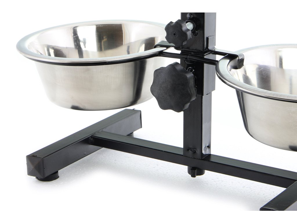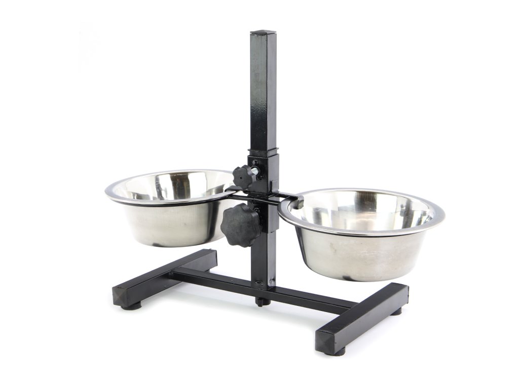 Stabilní kovový stojan na misky pro psy od BEEZTEES. Výšku umístění misek ve stojanu lze jednoduše regulovat – jak pro přizpůsobení potřebám a preferencím vašeho psa, tak i pro zabránění přístupu mravenců, jiných zvířat apod. Vyšší umístění misek je také vhodné pro starší psy. Maximální výška misky ve stojanu je 30 cm (k horní hraně).