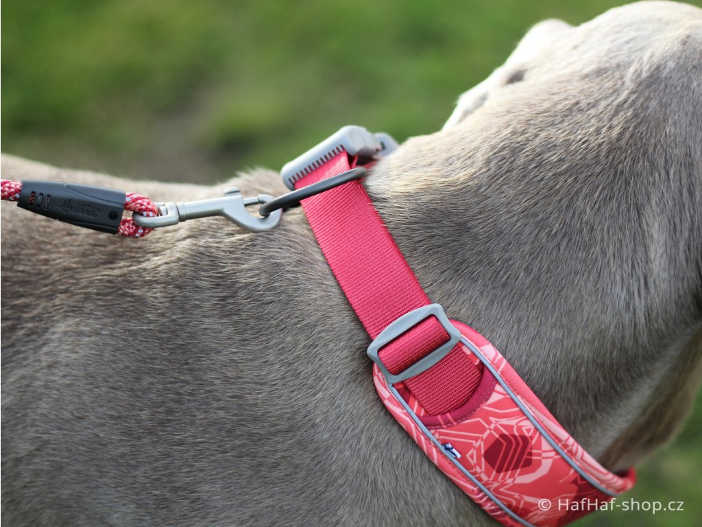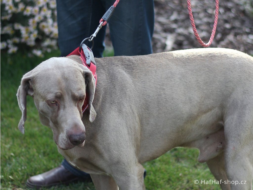 - pevného polyesteru s laminací Houndtex (pevnost v tahu nejméně 6× větší než doporučená hmotnost plemene),