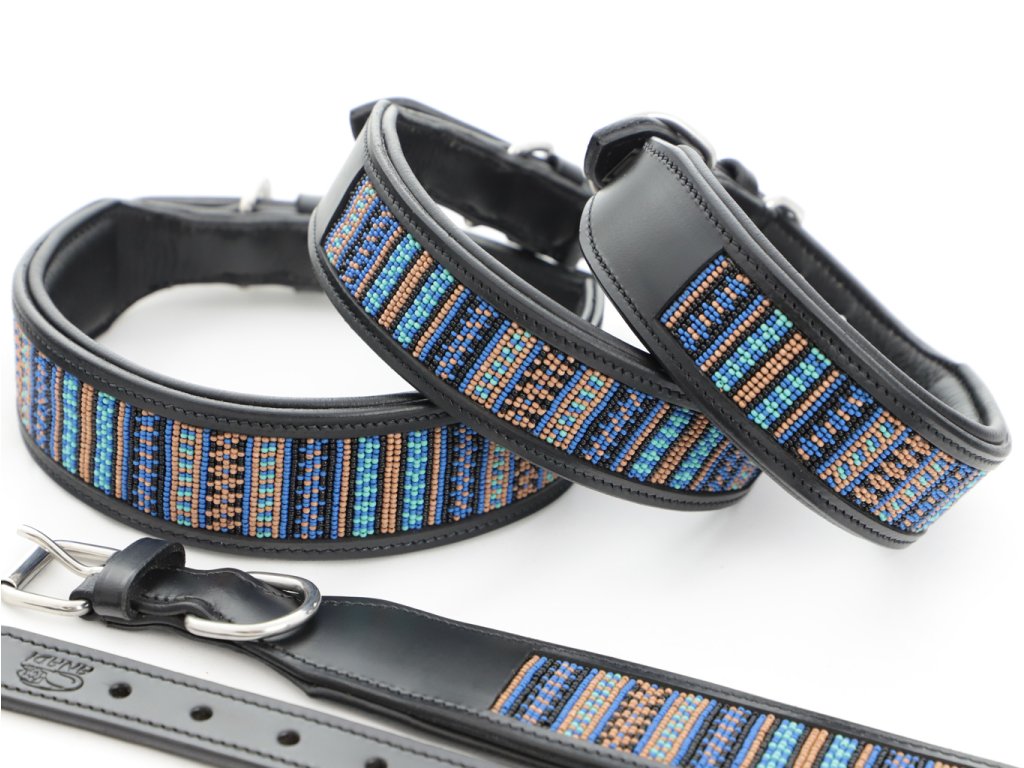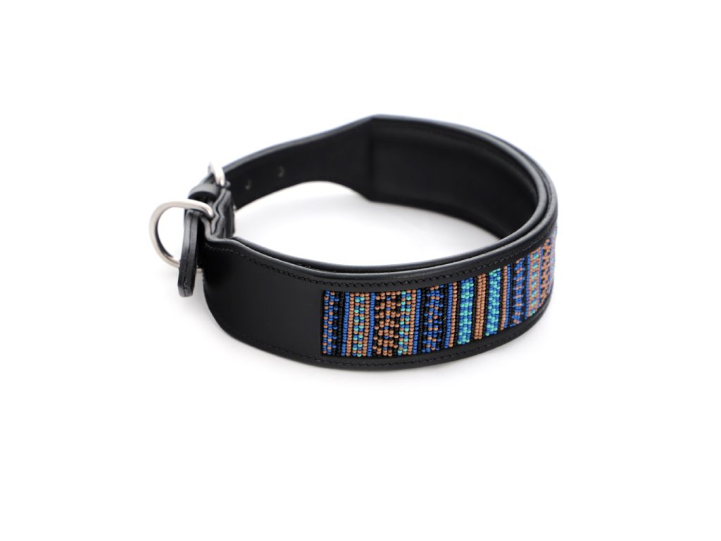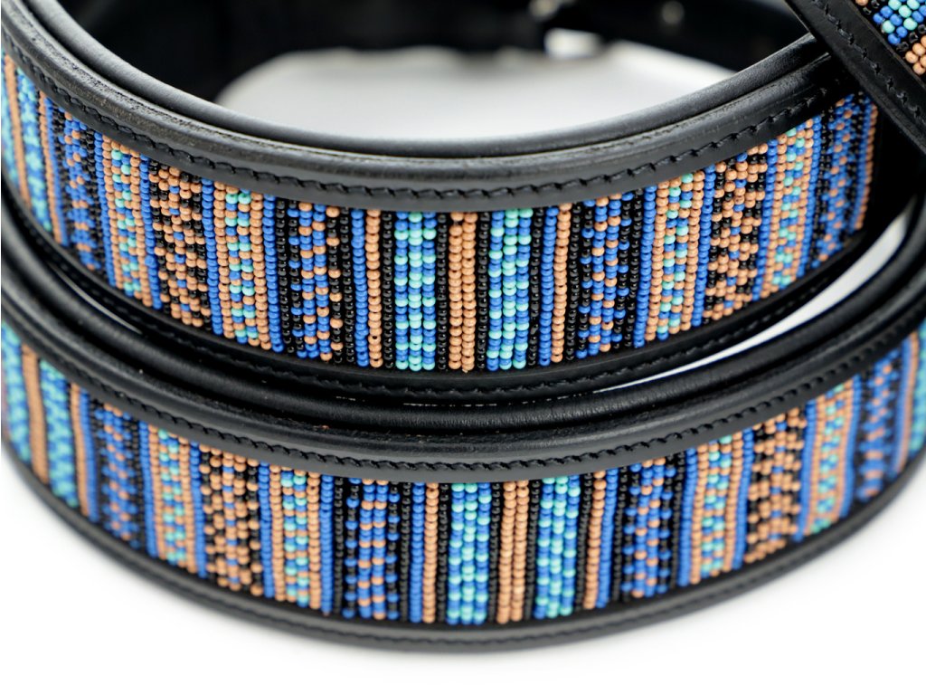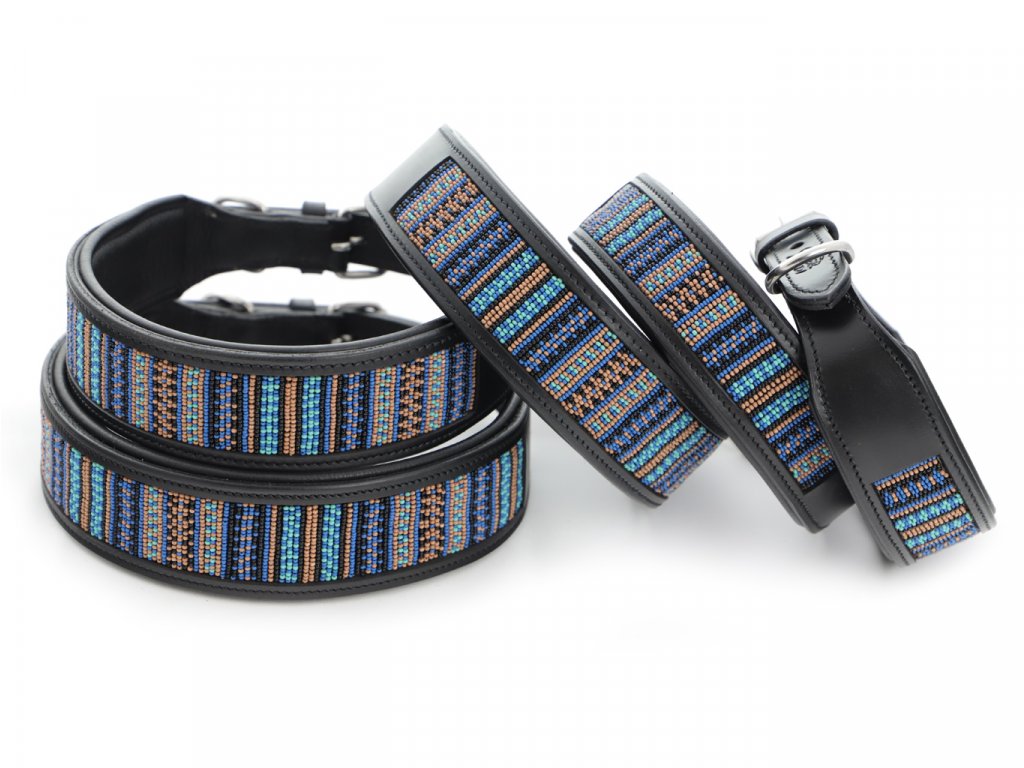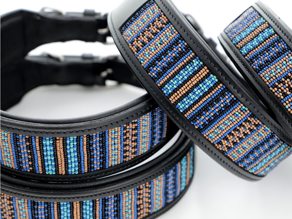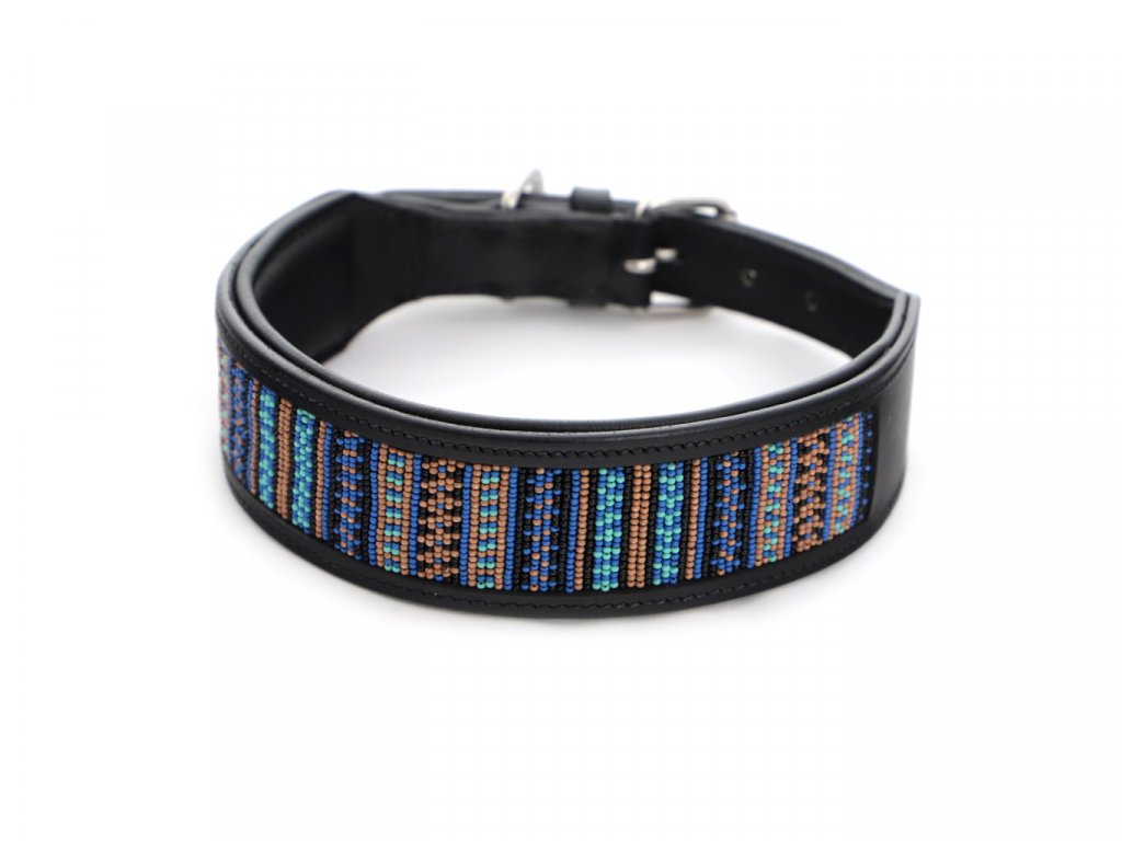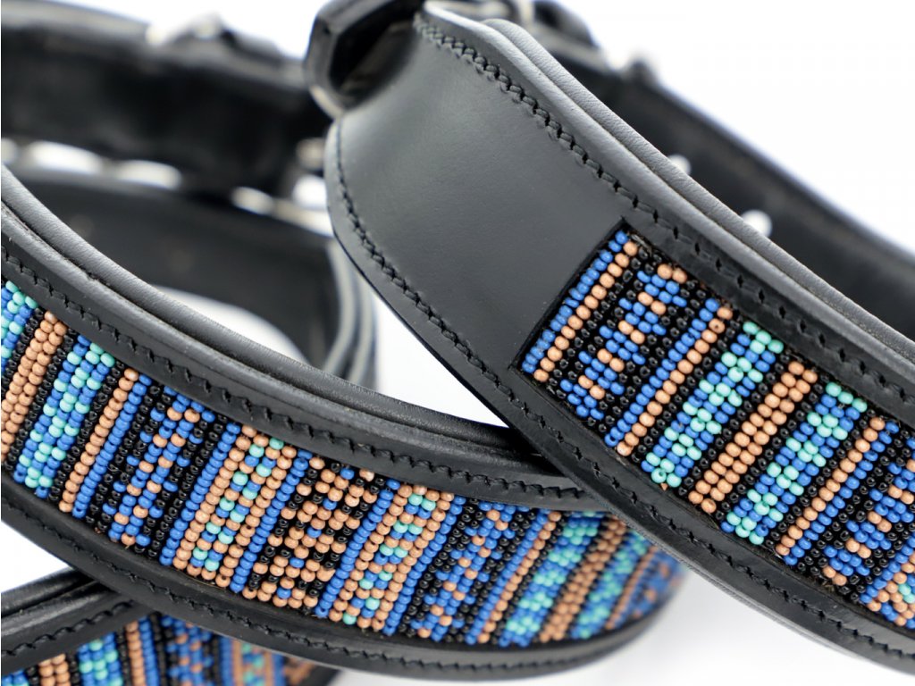 Kožený korálkový obojek pro psy ANADI BLUE LAGOON