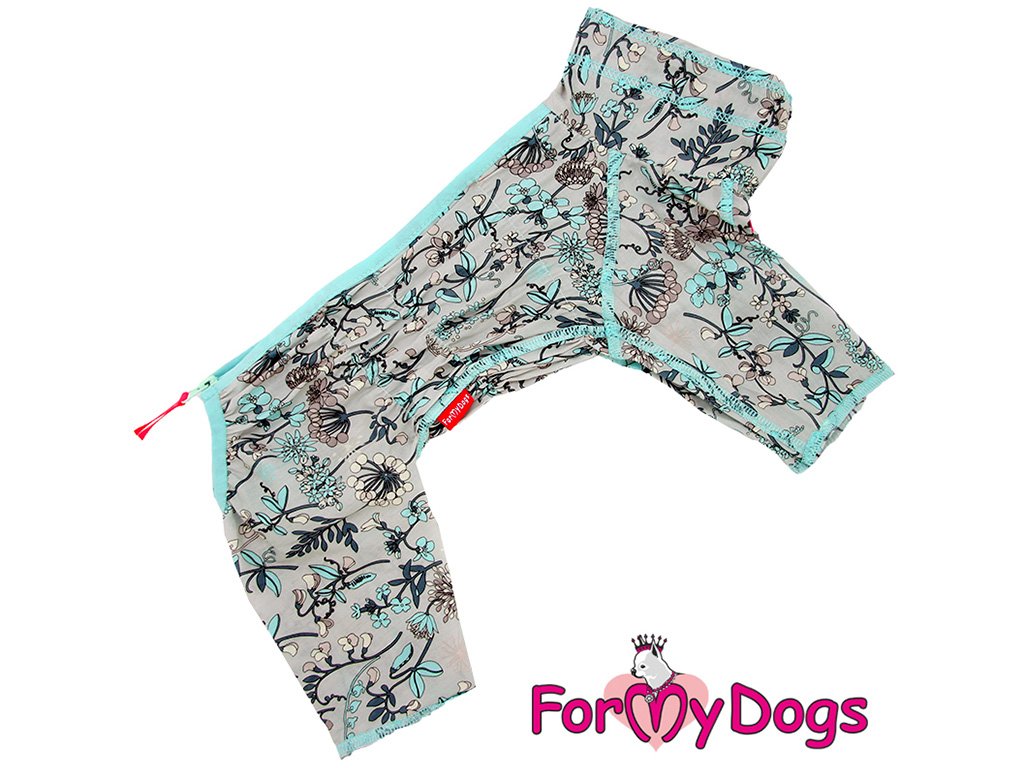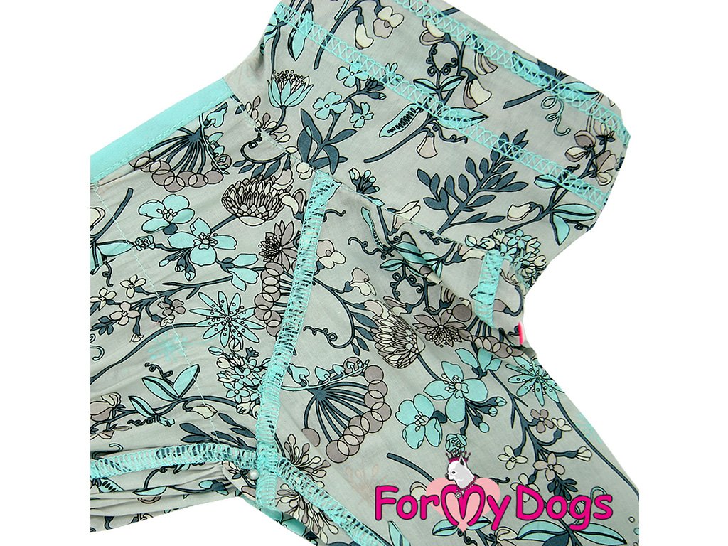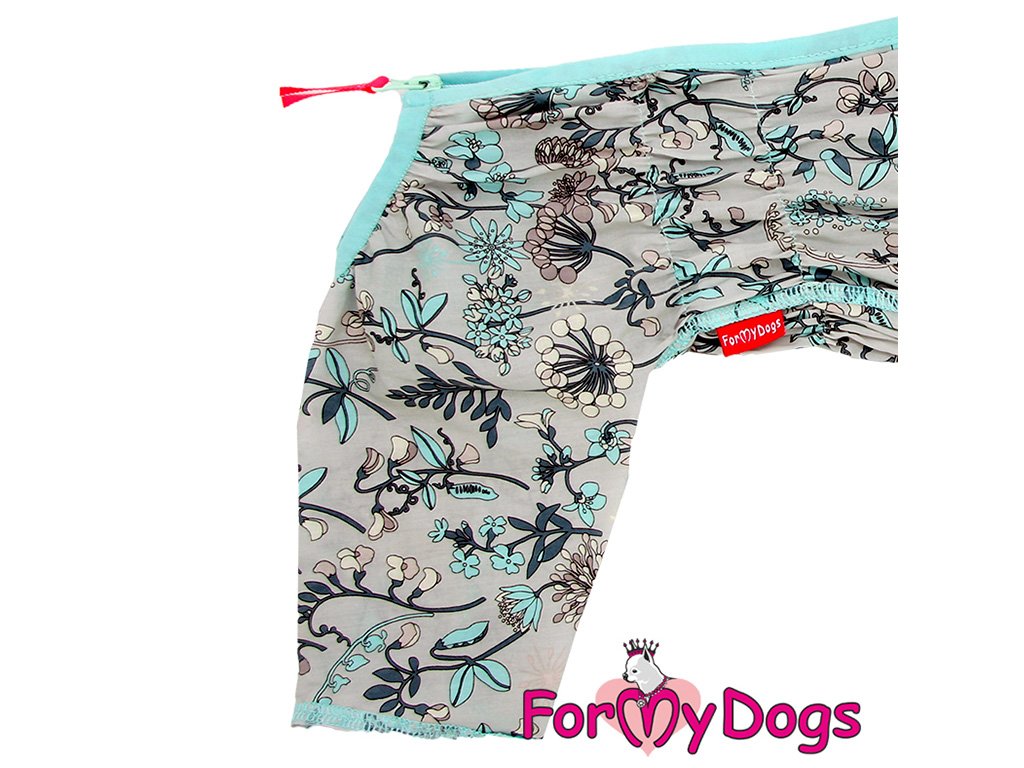 Obleček pro fenky – overal ForMyDogs DUSTER GREY FLOWERS