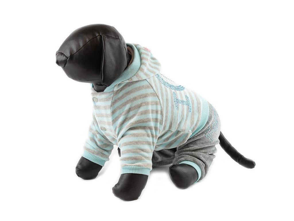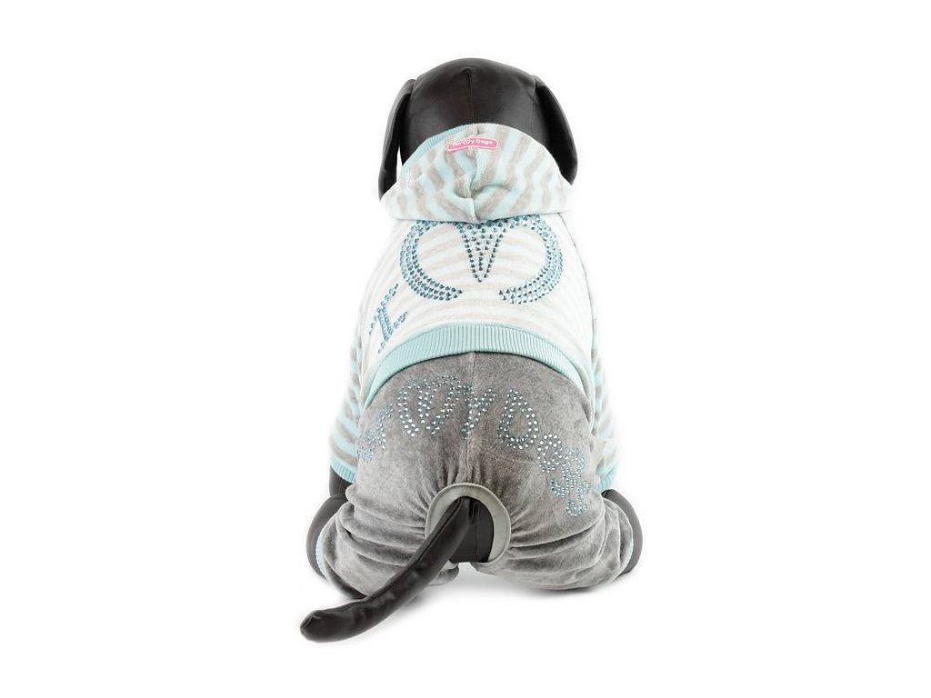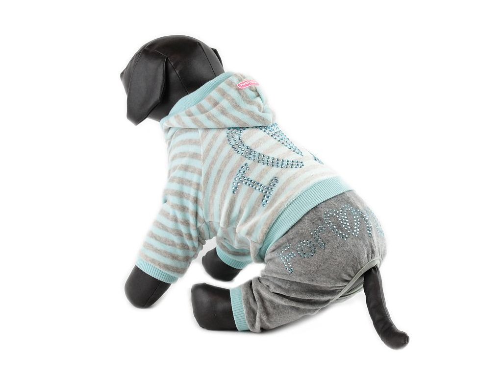 Měkoučký velurový overal od For My Dogs je určen pro chladnější dny. Bunda s kapucí, zapínání na druky na bříšku, v pase patentní lem. Na zádech a nohavicích aplikace z kamínků.