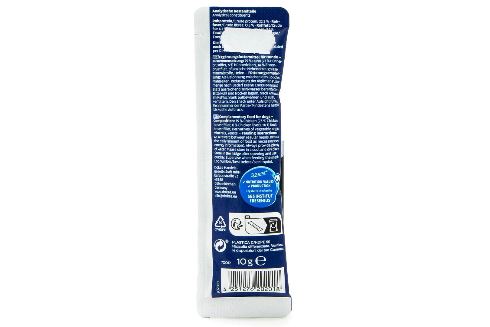 Edukativní okénko: Spojení dvou druhů mas není jen o chuti, ale i o pestrosti živin. Zatímco kuřecí prsa jsou symbolem lehkosti a vysokého podílu bílkovin, kachní maso dodává pamlsku výraznější aroma a specifické tuky, které psům neodolatelně voní. Tato 10g rolka je ideální jako rychlá odměna, která psa motivuje, ale nezatěžuje jeho trávení.