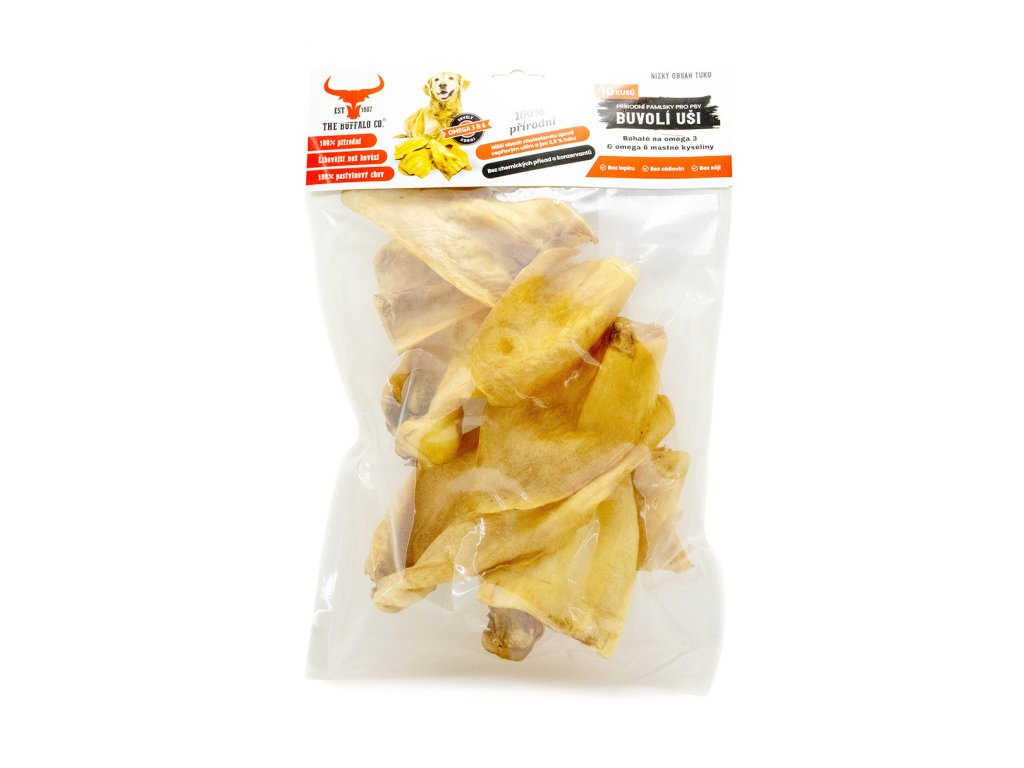 Dopřejte svému psovi přírodní žvýkací dobroty, které potěší chuťové buňky i trávení. Sušené buvolí uši od The Buffalo Co. pocházejí z buvolů žijících ve volném chovu, díky čemuž mají přirozeně zdravější složení než běžně prodávané vepřové nebo hovězí uši.