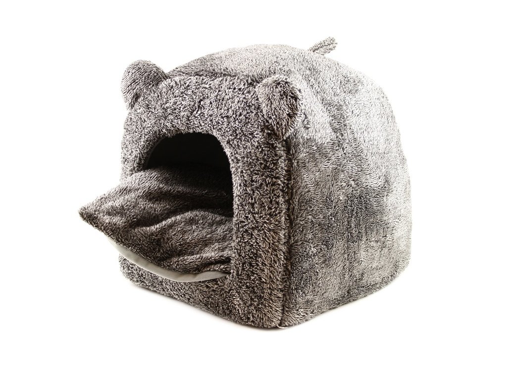 Domeček pro psy i kočky Grey Teddy Bear v originálním nepřehlédnutelném designu je celý vyrobený z měkoučkého a příjemného materiálu s pevným prošitím, které zaručuje pevnost a stabilitu pelíšku. Vnitřní vyjímatelná podložka je pokrytá jemným kožíškem, domeček je opatřen protiskluzovou úpravou.