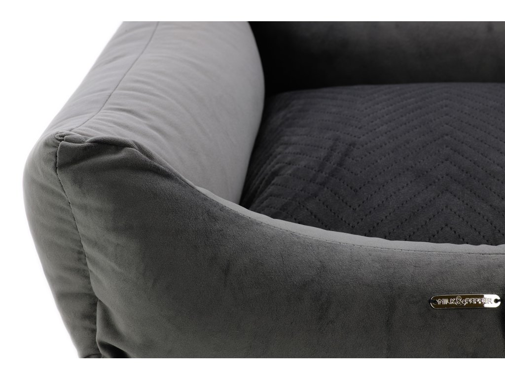 Krásný pelíšek ve stylovém designu a provedení od MILK & PEPPER je určený pro psy malých až středních plemen, kterým poskytne extra pohodlné a bezpečné místo ke spánku i k odpočinku. Bohatě vycpané vysoké bočnice vykládané jemným sametem ochrání před chladem a průvanem, mírně snížená přední strana usnadní přístup i pejskům s horší pohyblivostí.