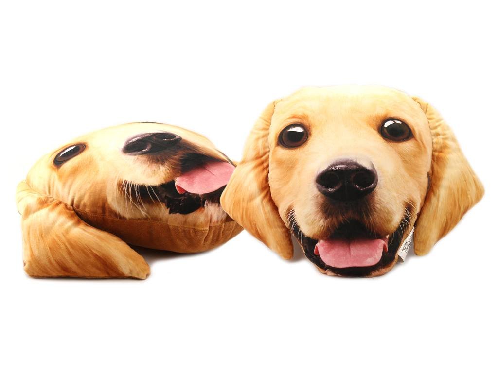 Originální měkoučký nadýchaný polštář ve tvaru hlavy zlatého retrívra s realistickým fototiskem, který se stane nepřehlédnutelným prvkem každého obýváku nebo dětského pokoje. Polštář je vyrobený z pevných, kvalitních materiálů a má flexibilní výplň, která skvěle drží tvar.