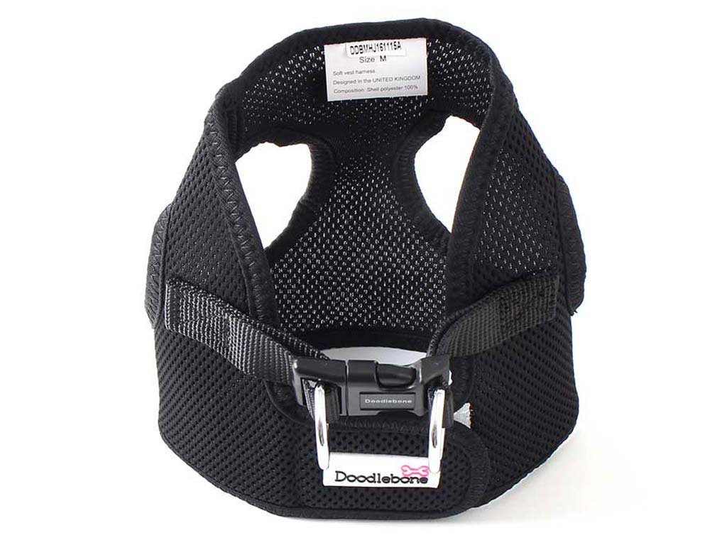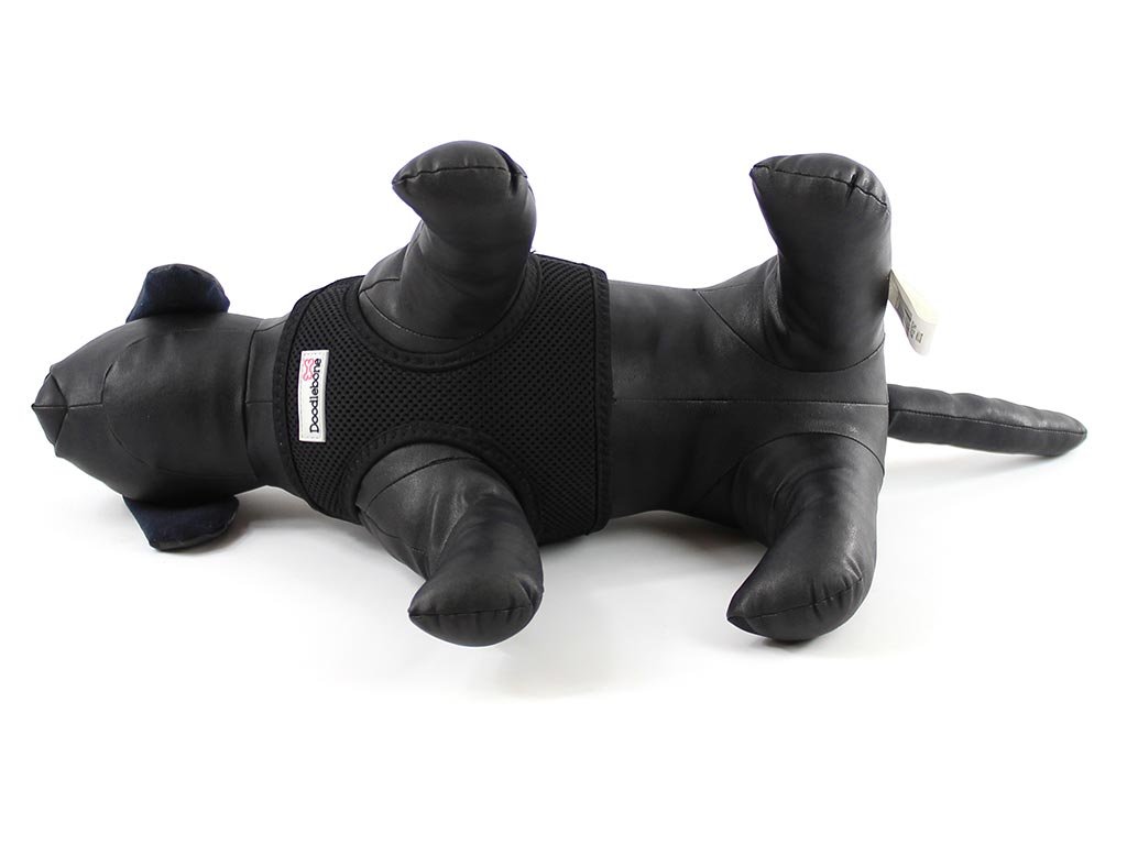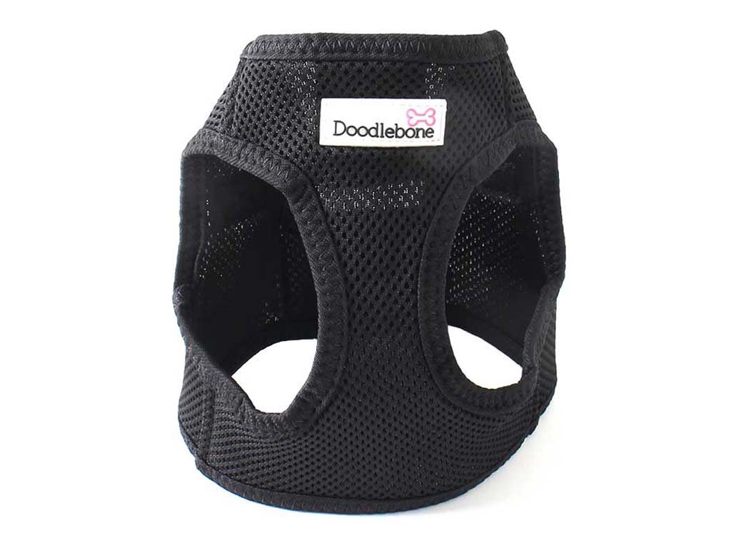 Hrudní postroj pro psy „Airmesh Snappy Black“ od Doodlebone je vyrobený z lehoučké a vzdušné síťované látky. Na rozdíl od klasických popruhových postrojů obepíná daleko větší plochu těla psa a tak nikde nedře či netlačí ani temperamentnější psy nebo aktivní štěňata.