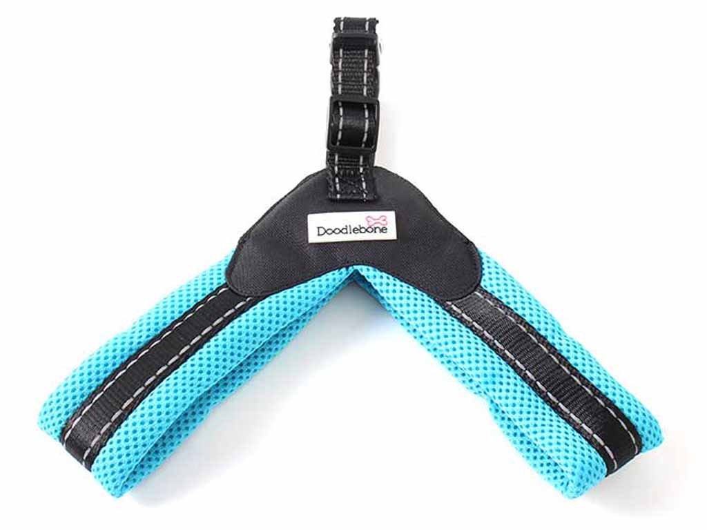 Postroj pro psy „Airmesh Boomerang Purple“ od Doodlebone je vyrobený z lehoučké, vzdušné a přesto velmi pevné síťované látky. Už na první pohled vynikne jeho minimalistické provedení, které z něj činí nejjednodušší a přitom geniálně promyšlený postroj na trhu. Velmi snadno se nasazuje a díky své konstrukci nikde nedře či netlačí ani temperamentnější psy nebo aktivní štěňata.