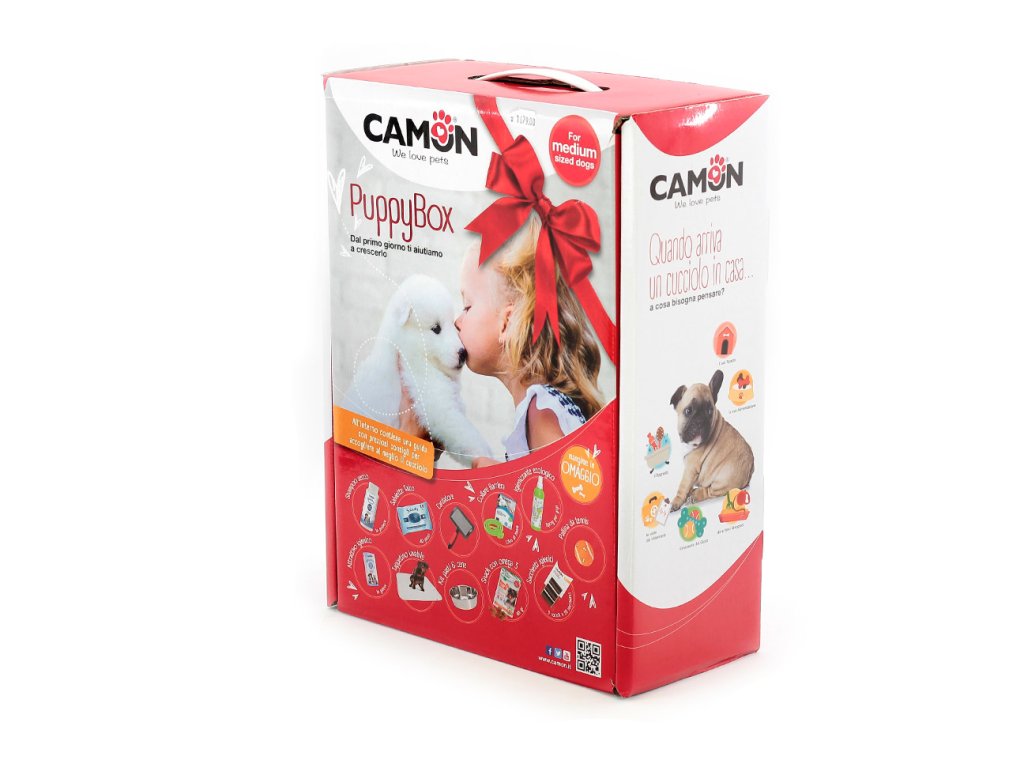 CAMON Puppy Box je kompletně vybavená startovací souprava všech důležitých věcí, která pomůže novému majiteli štěněte pořídit jedním nákupem vše potřebné do začátku. Je ideální také pro chovatele jako dárek k nově umístěnému štěněti.