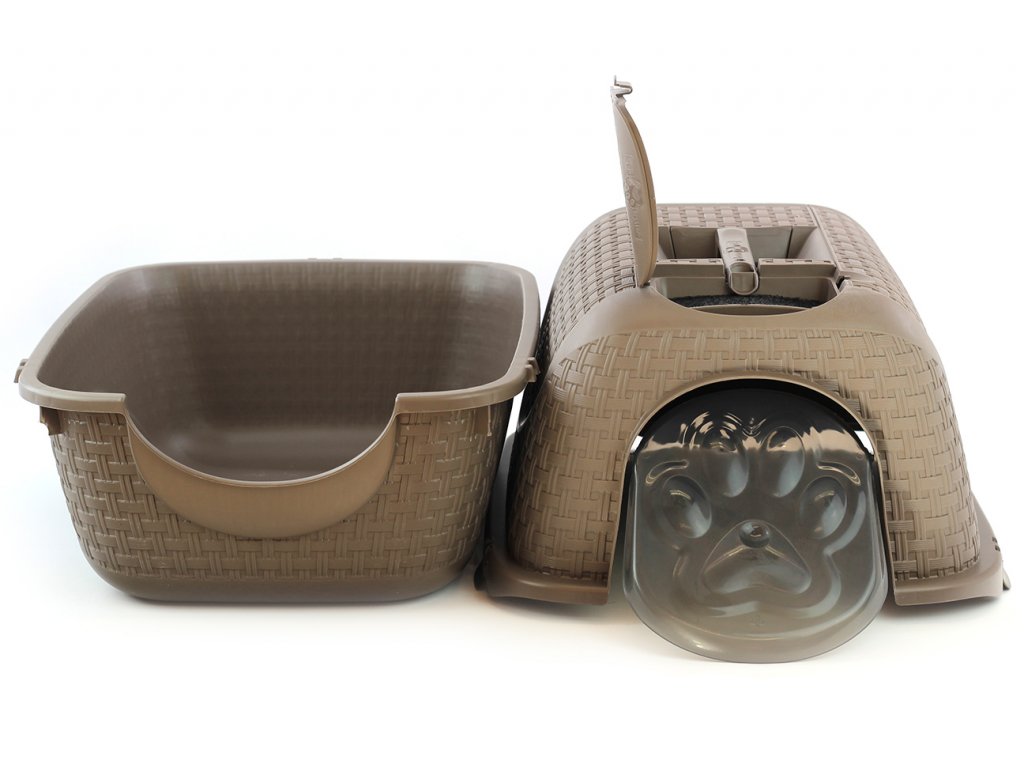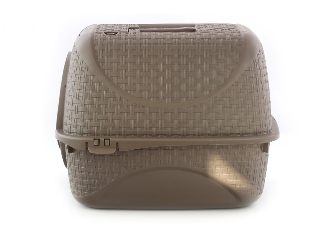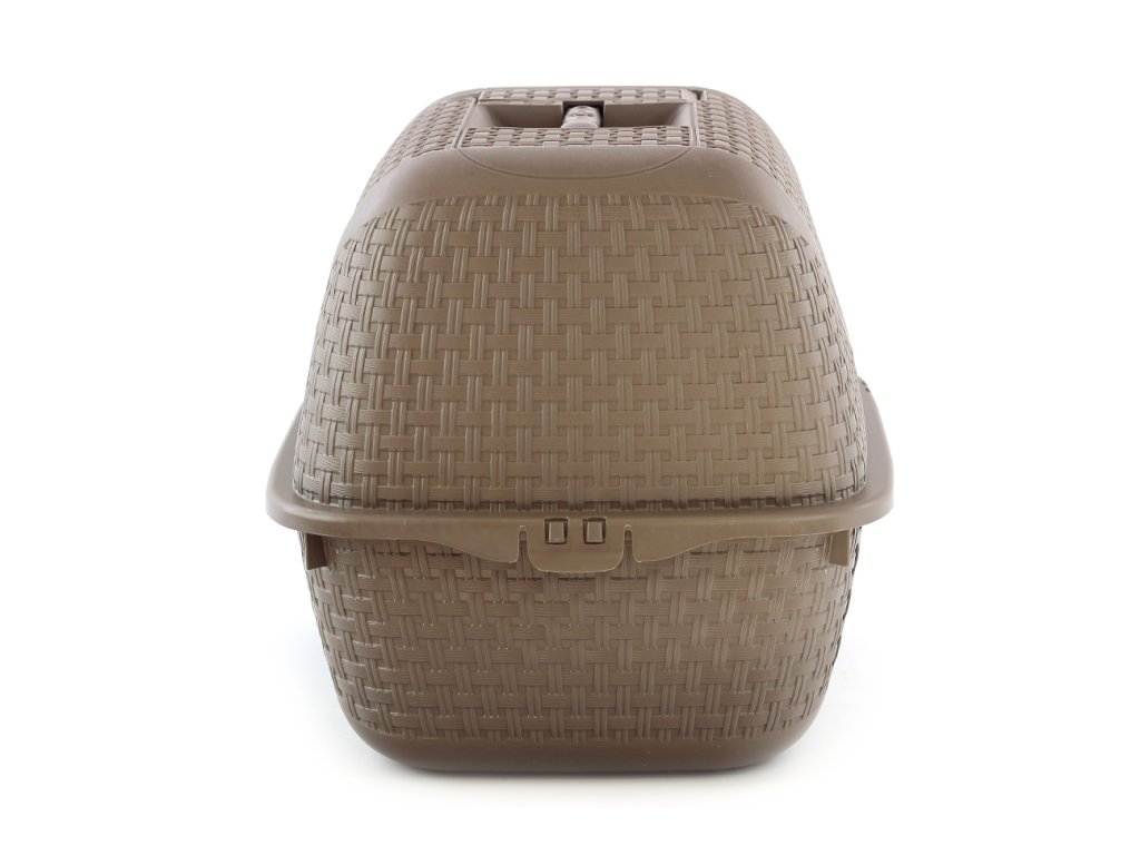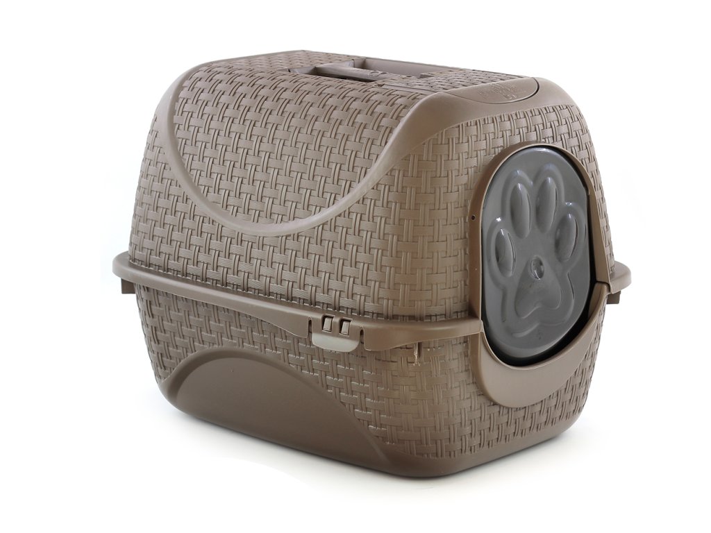 Prostorná krytá toaleta pro kočky z pevného omyvatelného plastu v originálním „proutěném“ designu. Toaleta má zvýšenou základnu pro dostatečné množství kočičího steliva a je opatřená výklopnými průhlednými dvířky pro dokonalé soukromí. O odstranění nepříjemného zápachu se postará výměnný uhlíkový filtr. Toaleta je opatřena úchytem pro snadnou manipulaci.