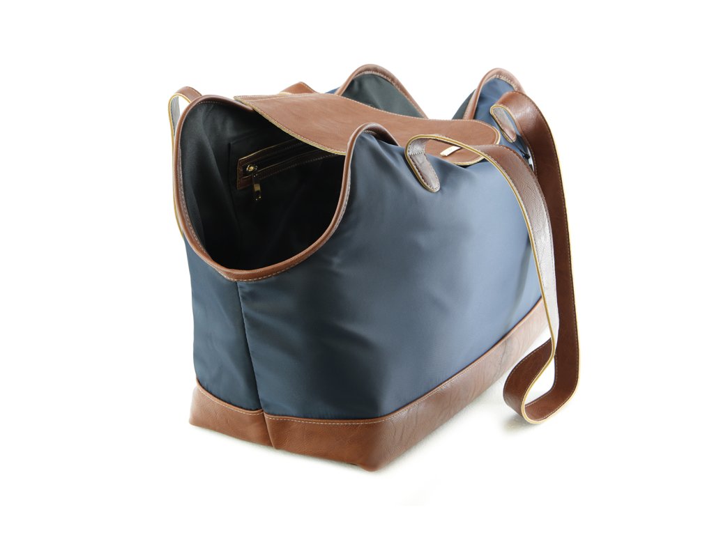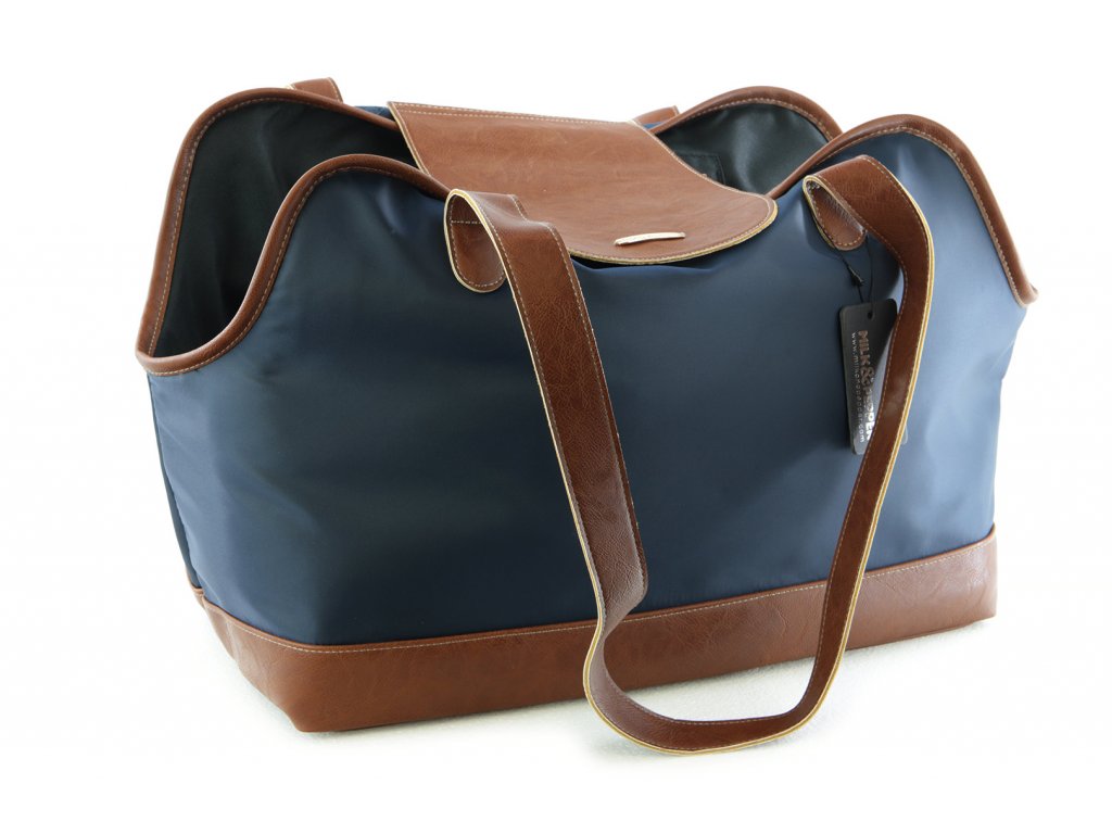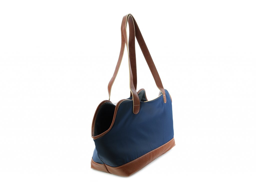 NORA je luxusní taška na psa precizně vyrobená z těch nejkvalitnějších materiálů. Taška ve stylovém modrém provedení s magnetickým zapínáním je prostorná, má dlouhá pevná ucha na přenášení, vyjímatelnou zpevněnou podložku a bezpečnostní popruh s karabinou na obojek nebo postroj psa. Uvnitř najdete také praktickou zapínací kapsu na zip. Velké otvory v horní části zajistí vašemu čtyřnohému kamarádovi výhled i dostatečné větrání.
