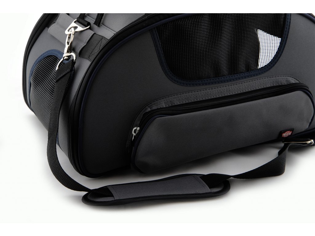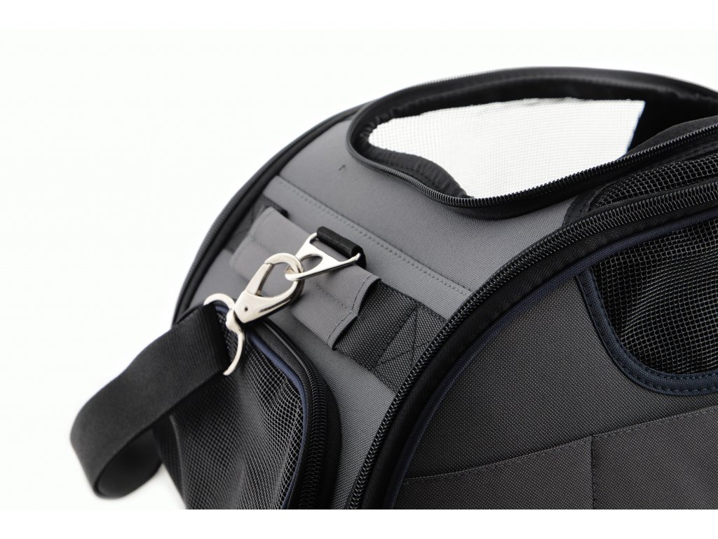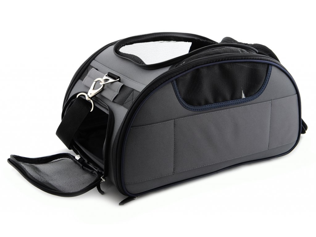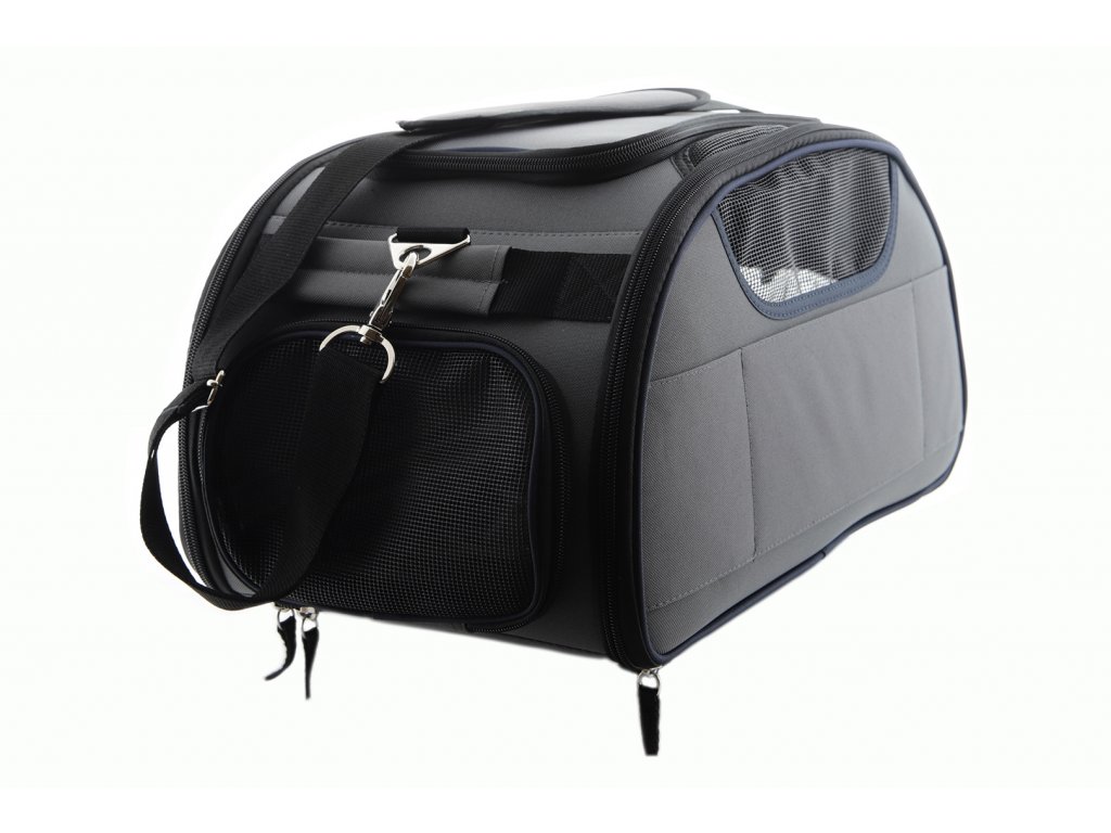 Pro snadné přenášení na rameni je opatřená nastavitelným polstrovaným popruhem, k manipulaci poslouží také dva pevné úchyty. Tašku lze také připevnit na vozík nebo madlo cestovního kufru na kolečkách. Taška má nosnost 20 kg a poskytuje dostatečný prostor a pohodlí pro vašeho čtyřnohého kamaráda.