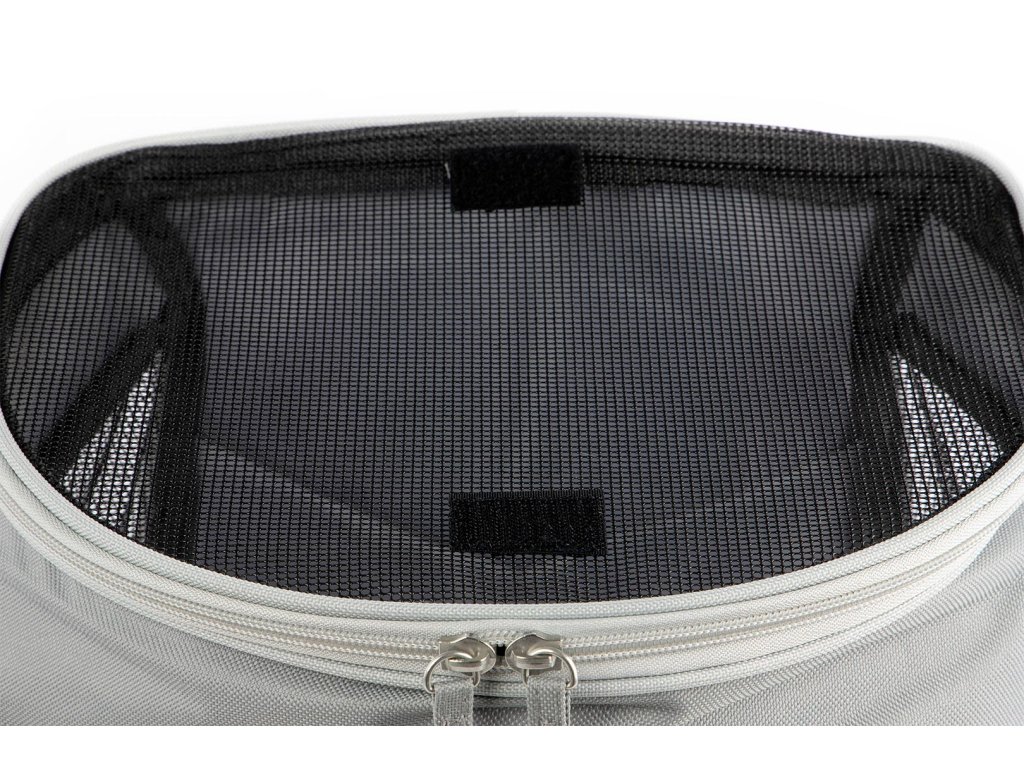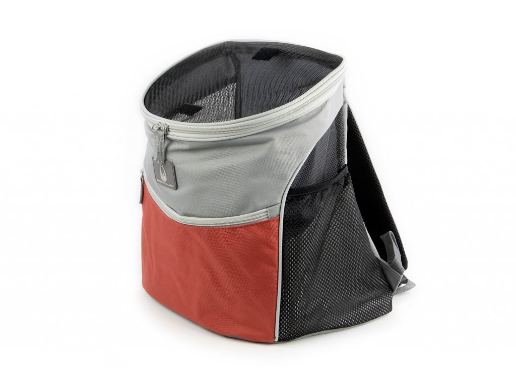 Batoh poskytne vašim psům dostatečnou ochranu, síťované průzory nahoře a po stranách jim zajistí dostatek čerstvého vzduchu. Horní síťku lze rozepnout pro lepší výhled, na stranách batohu najdete dvě síťované kapsy, vpředu jednu velkou na zip. Uvnitř je nezbytné bezpečnostní poutko s karabinou pro připevnění na postroj nebo obojek psa a vyjímatelná podložka.