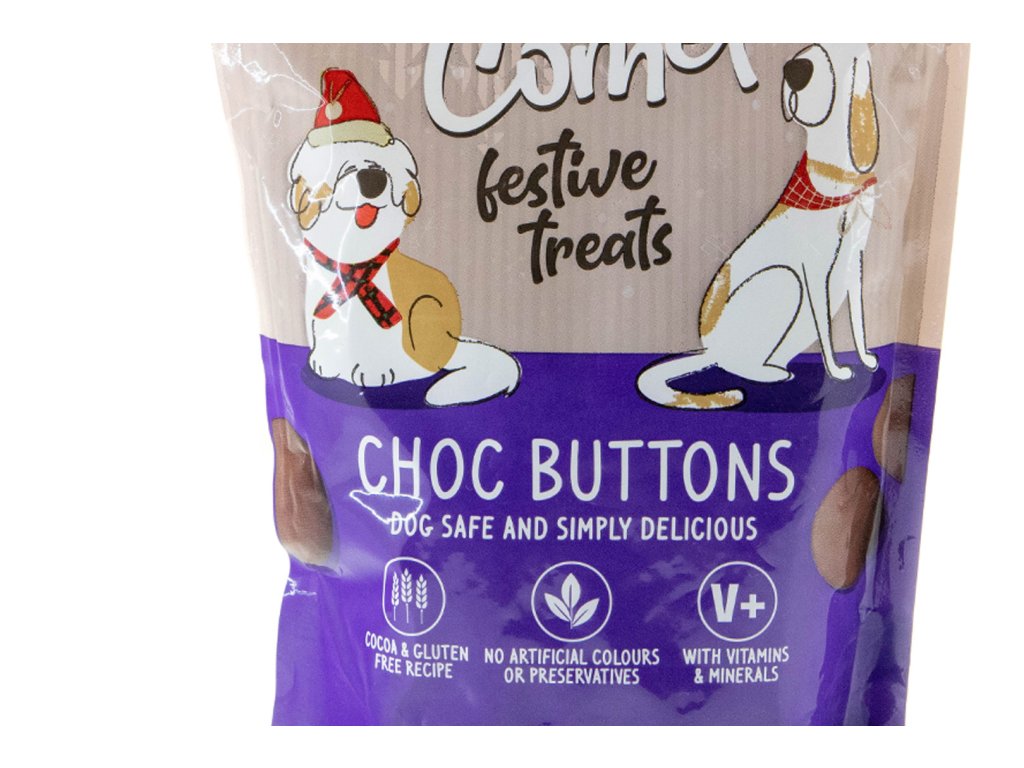 Čokoláda k Vánocům prostě patří – a díky těmto vánočním pamlskům si ji může užít i váš pejsek! Rosewood Choc Buttons vypadají jako malé čokoládové bonbonky, ale jsou zcela bez kakaa, takže jsou pro psy naprosto bezpečné. Přitom voní i chutnají tak lákavě, že váš chlupáč rychle pochopí, že Vánoce jsou oficiálně tady.