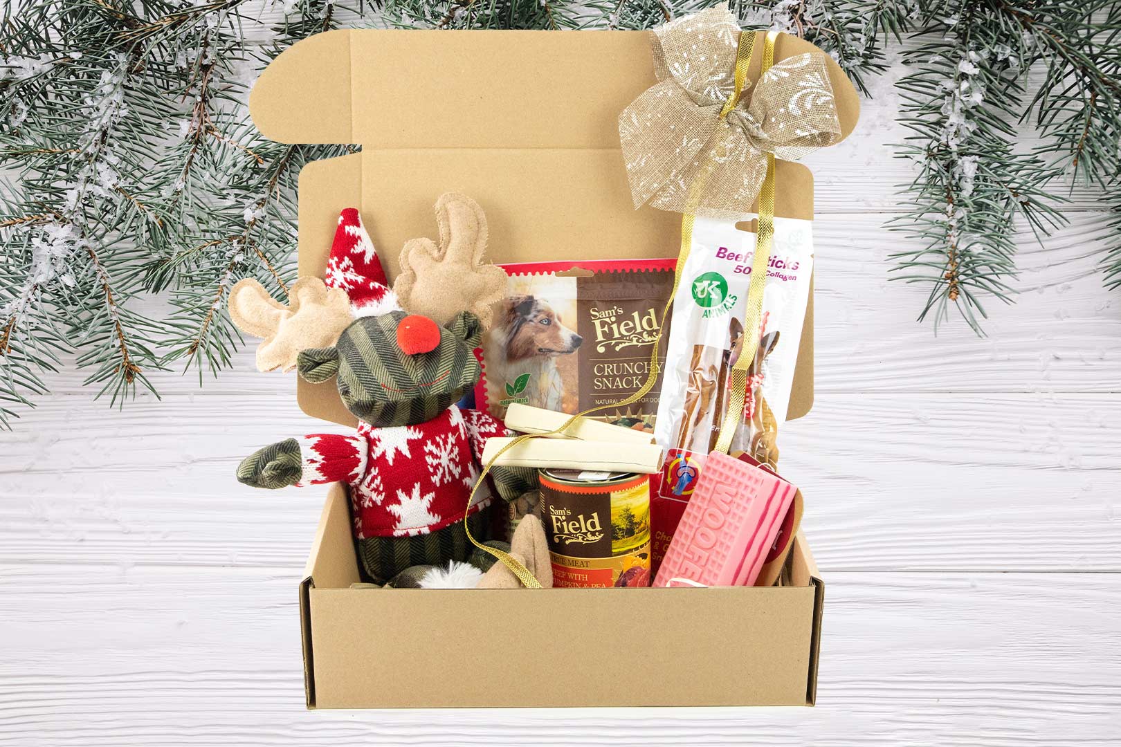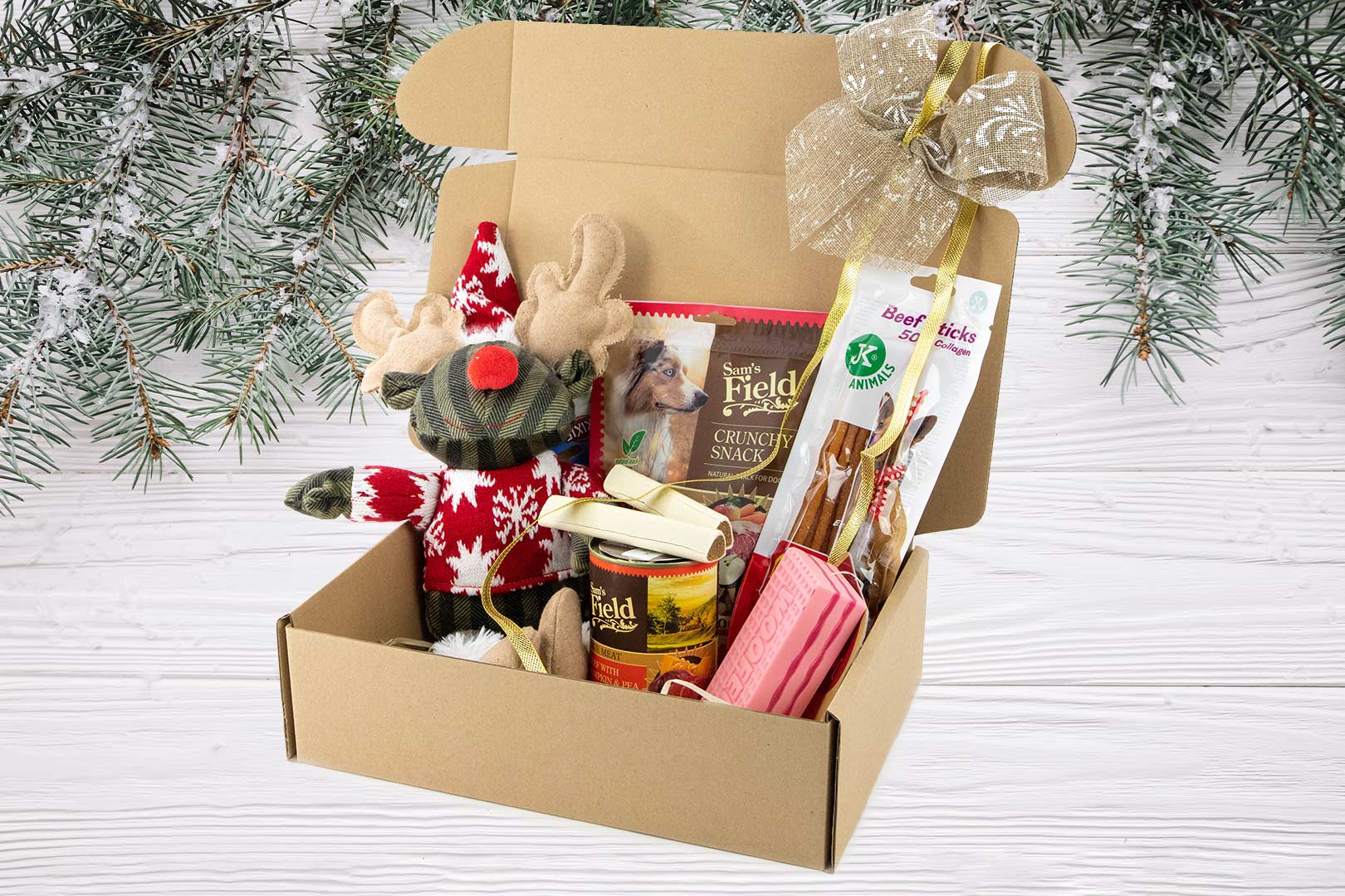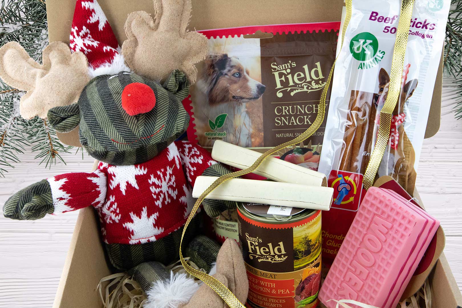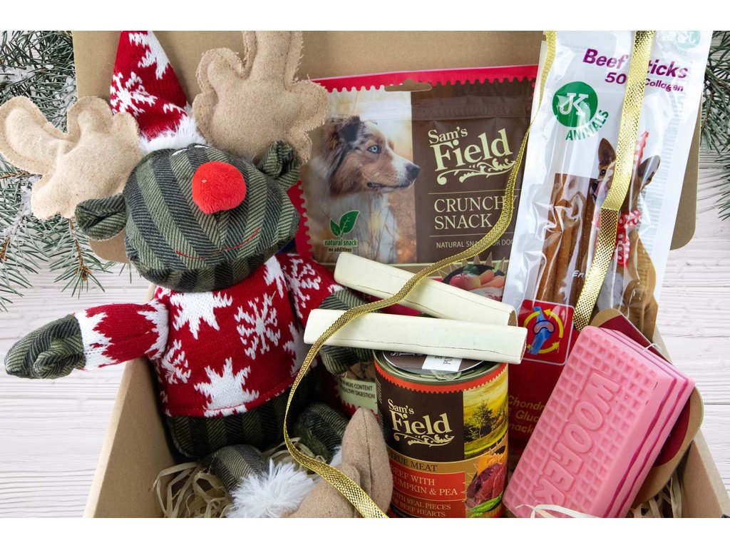 Vše je krásně zabalené a ozdobené sváteční mašlí – stačí položit pod stromeček a sledovat, jak váš pes s nadšením objevuje, co se uvnitř skrývá.