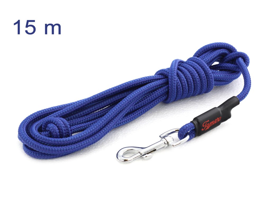 Stopovací vodítko pro psy od české firmy TAMER vyniká precizním zpracováním za použití nejkvalitnějších materiálů – odolného horolezeckého lanka a pevné pochromované karabiny. 15m stopovačka má praktický kruhový průřez o průměru 6/9 mm a je zakončená jednoduchým uzlem, který lze podle potřeby snadno rozmotat.