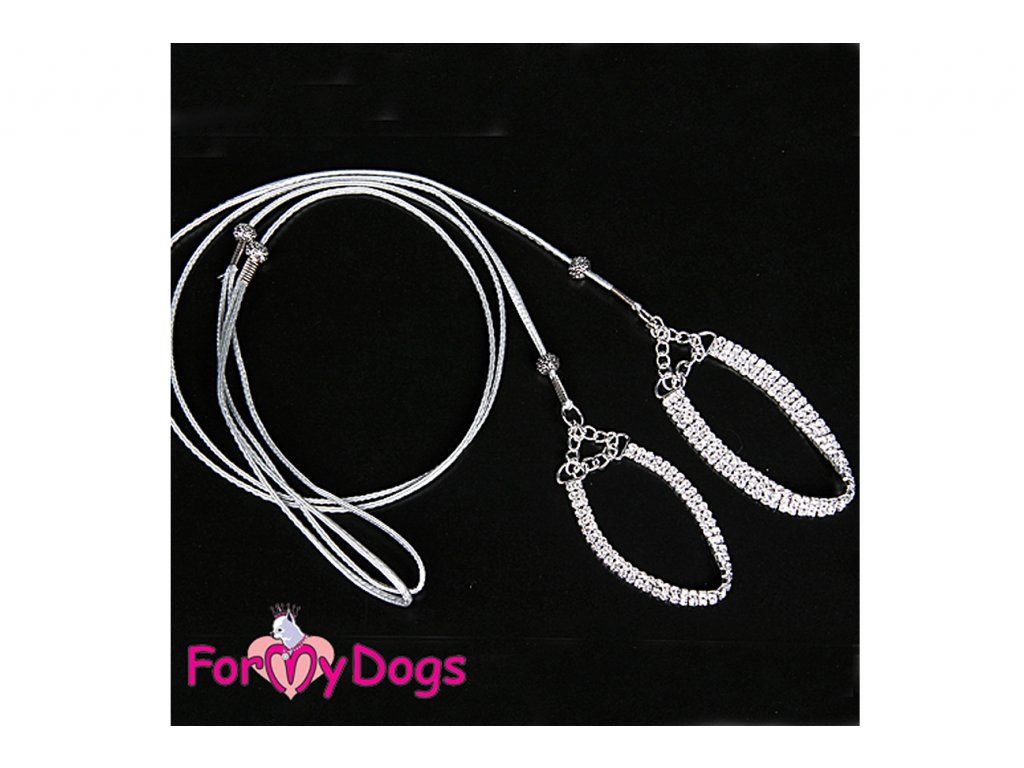 Výstavní vodítko pro psy – stříbrné s bílými krystaly