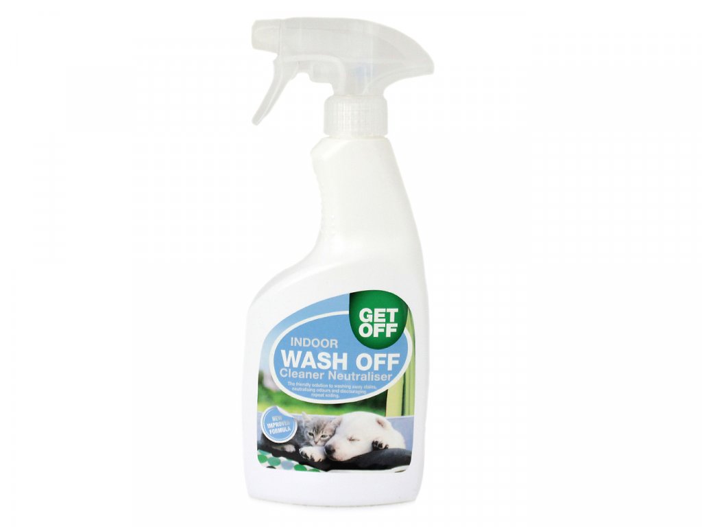 „Get Off“ Cleaner Neutraliser s novou technologií je bezpečné a netoxické řešení na vyčištění označkovaných míst a zabránění psům i kočkám v opakovaném značkování uvnitř i venku. Neutralizuje zápach moči. Zanechává citrusovou vůni.